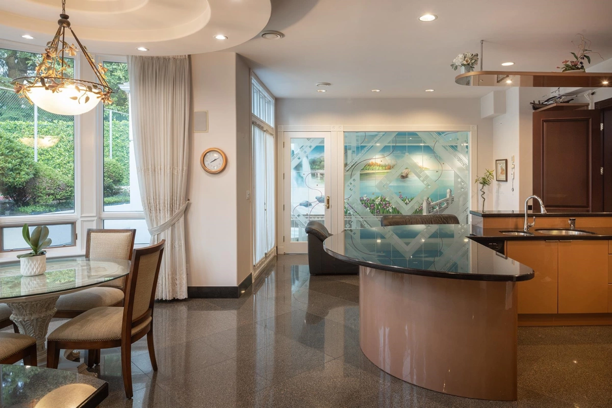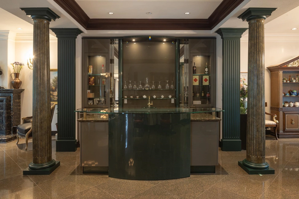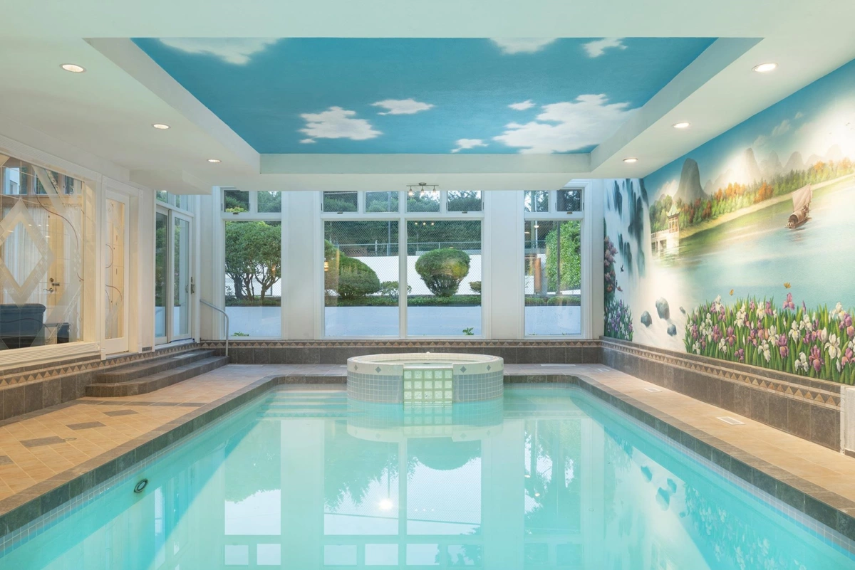 A landmark estate of timeless elegance and resort-style luxury in West Van’s prestigious British Properties. This gated 24,000 sqft property hosts a 9,700 sqft 3-level, 6-bed residence with classic architecture and exquisite detailing. A grand columned entry and sweeping staircase lead to formal living/dining rooms, elevator, chef’s kitchen with sculptural island, walk-through pantry, and separate wok kitchen. Main floor features an indoor pool with ceiling mural. Upstairs offers a sunlit lounge and serene primary suite with spa-inspired en-suite, 2 walk-in-closets & separate sitting area. Downstairs includes a fully equipped home theater. Outdoors: tennis court, manicured gardens, and lush privacy. An elevated lifestyle of sophistication and comfort.