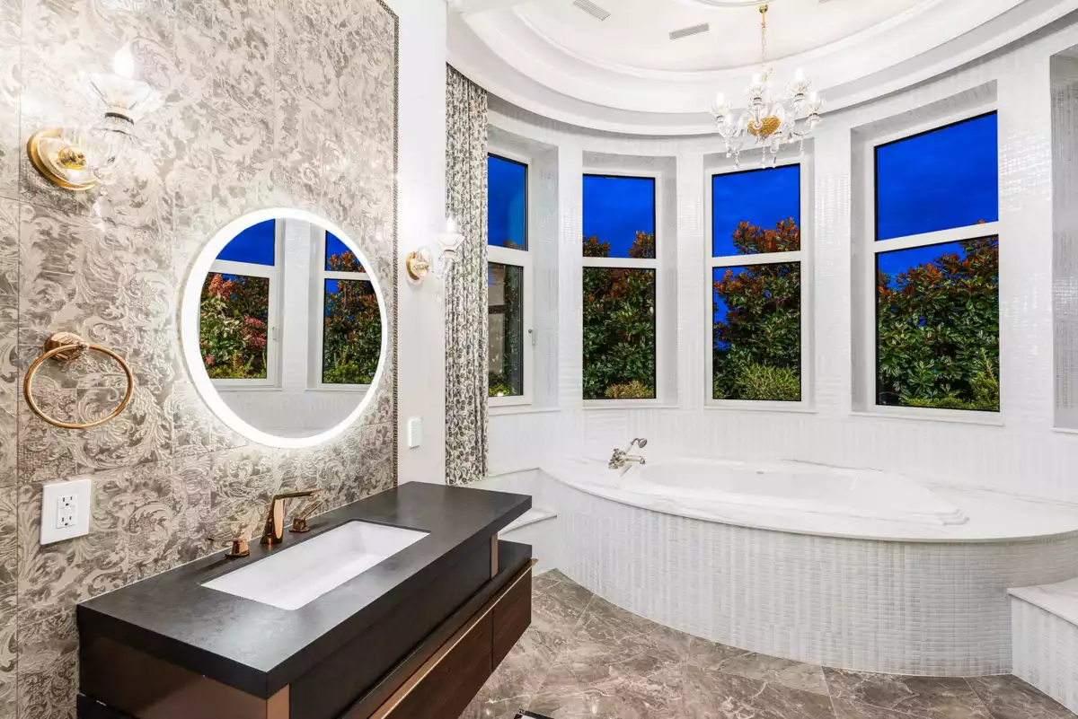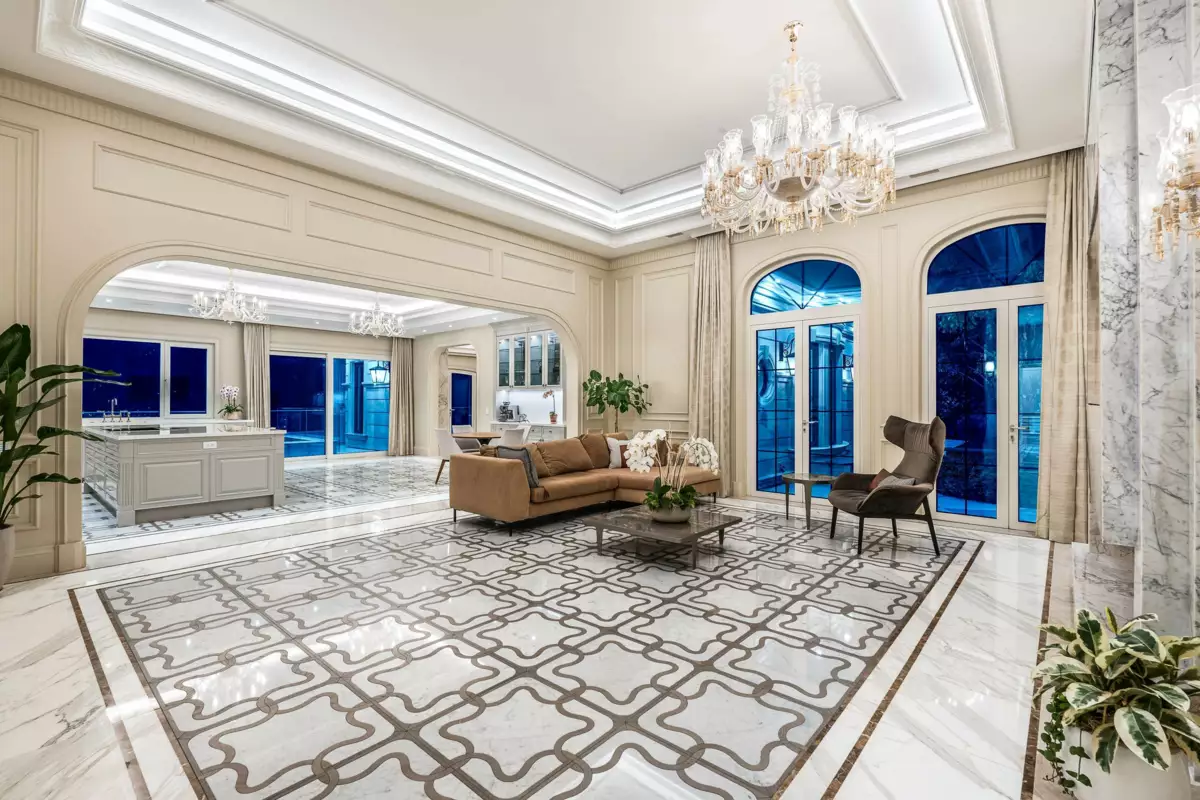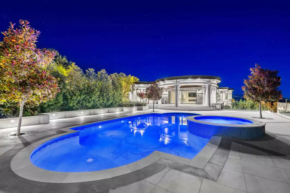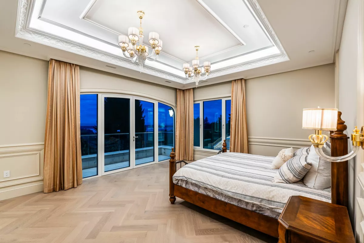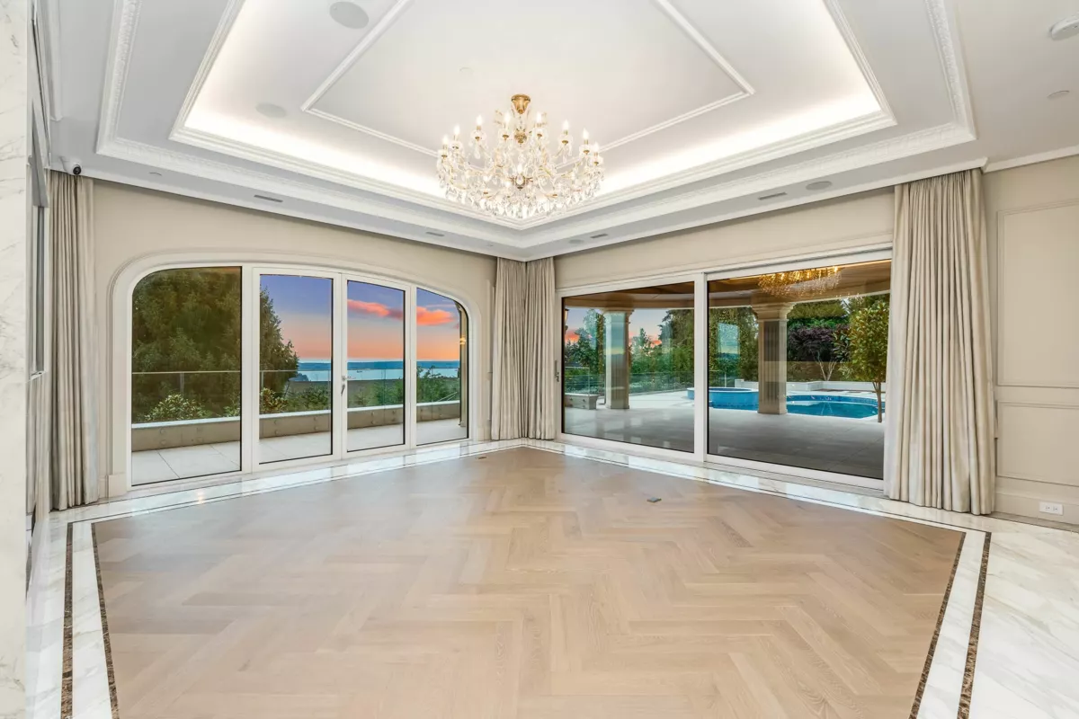 British Properties Estate newly completed, this house situated on a prestigious street, private, views of city & harbour and Lions Gate Bridge. This 12,967 sq ft 2 level home built on a 24,746 square feet level lot. Open floor Plan, gourmet kitchen, 6 oversized ensuited bedrooms w/walk-ins, 11 baths, high ceilings, elevator, Over sized indoor and outdoor swimming pools, sauna, steam room, large level heated driveway, water feature, and 5-car parking, fire pit, park like landscaping designed by Paul Sangha and upscale home theatre! Handmade floors are Calacatta marble with wood inlay and/or metal inlay. Gourmet chef’s kitchen featuring Gaggenau appliances and wok kitchen. This home truly beyond impressive.