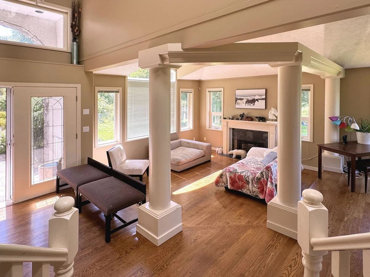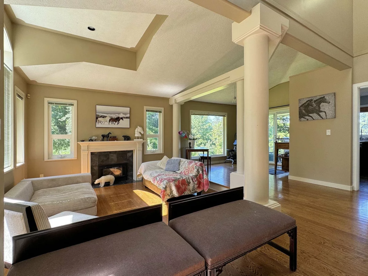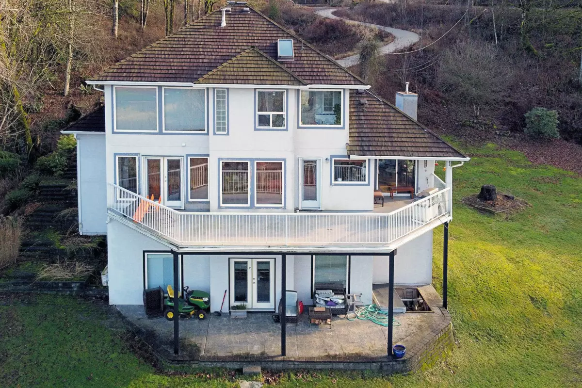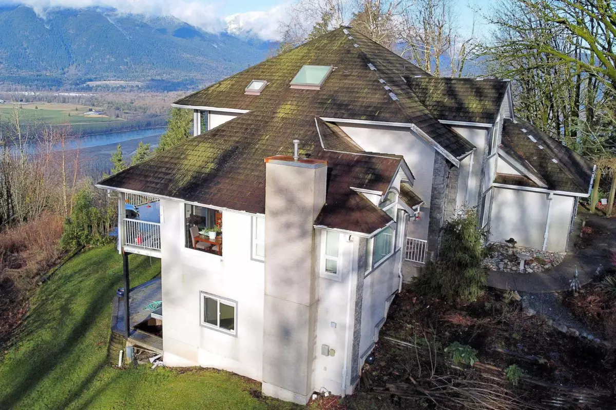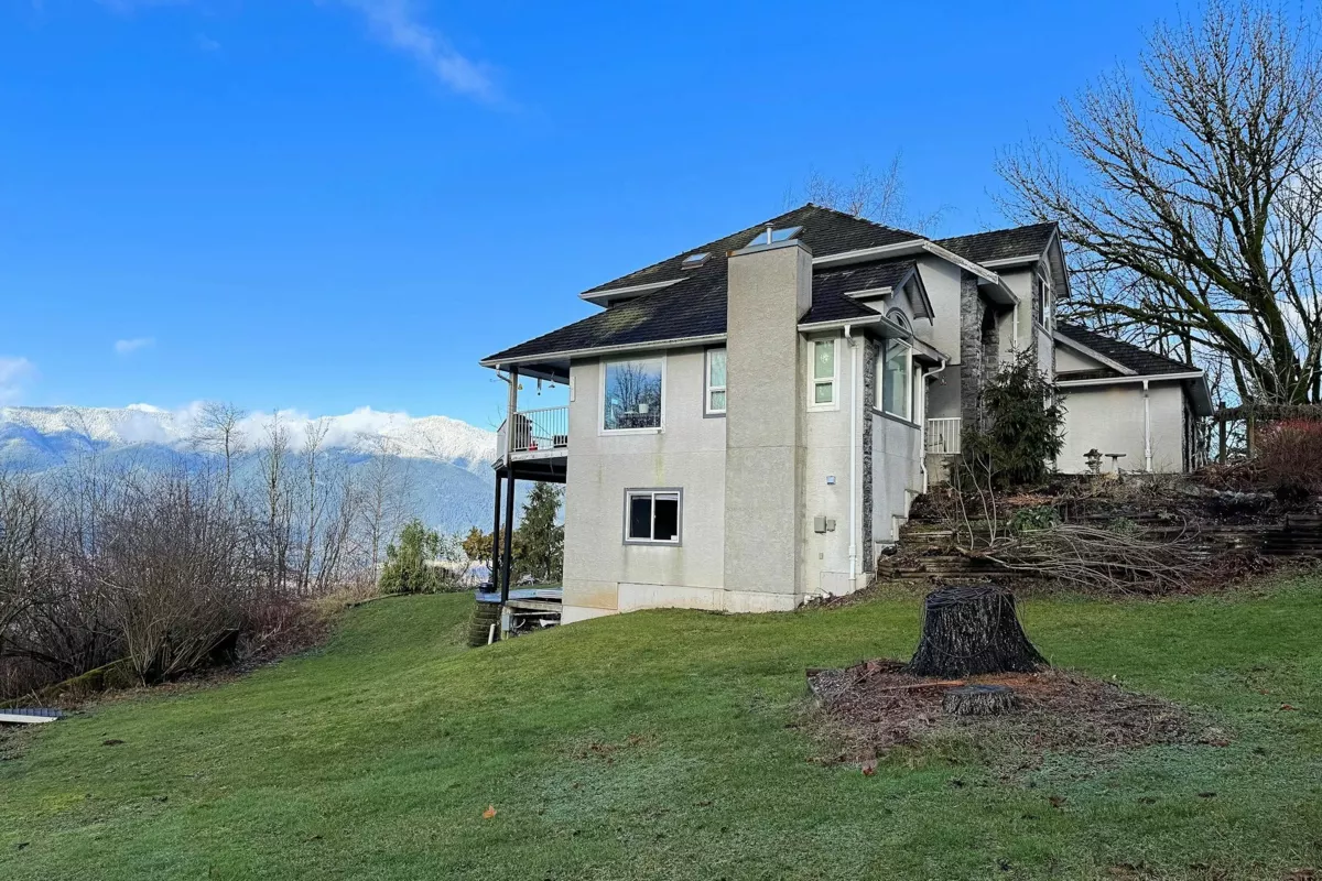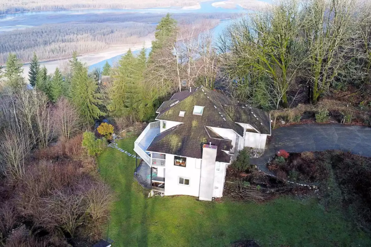Mountaintop views! Originally 2 lots, it's just over 3 acres of land overlooking the Fraser River and mountains to the north and west. This is custom built two storey home also has a fully finished basement with extra high ceilings. The wall of north facing windows captures the breathtaking views of sunsets, mountains & the Fraser River. The remodeled gourmet kitchen is just stunning large quartz island, built-in appliances incl gas cook top, and a heated tile floor too! Grand vaulted ceilings and hardwood floors add grandeur & style to the main living area. The family room opens to a huge viewing deck. 3 bedrooms up. The master suite boast huge closet and luxury ensuite plus fab views to wake up to. The full walk-out basement has 2 bedrms, media area, bathrm and huge recrm, ideas?