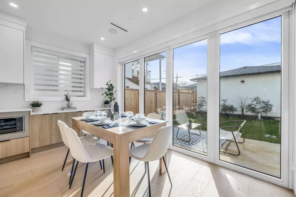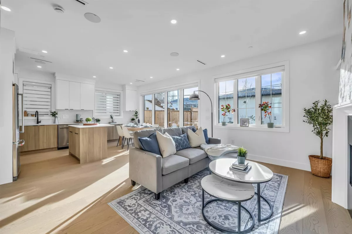 Discover elevated living in this exquisite, high-end modern duplex in a vibrant neighbourhood. This bright, private south-facing home offers 3 generous bedrooms, a primary suite with walk-in closet and office, plus 4 spa-inspired bathrooms. The open-concept design features a cozy gas fireplace for gatherings and a chef’s kitchen with high-end appliances & ample counter and cabinet space. Enjoy seamless indoor-outdoor living through panoramic eclipse doors to a private backyard, perfect for relaxing or entertaining. Radiant heated floors provide year-round comfort, making this one of the last new duplexes with this rare feature. This high efficiency home also has hot water on demand and AC. Ideally located minutes from Queen Elizabeth Park, Hillcrest Community, and lively Main St.