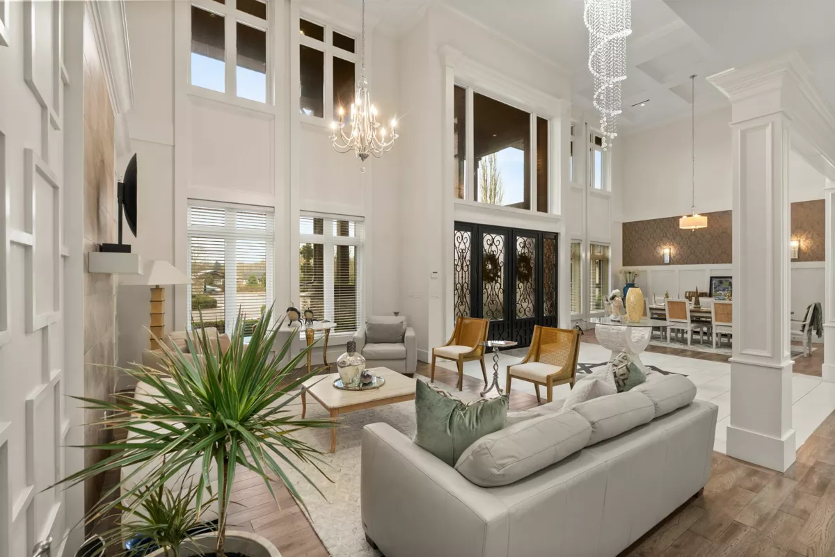 Experience UNPARALLELED LUXURY on this CUSTOM-BUILT 7,500 sq ft estate (2016) set on ~10 acres in prestigious PORT KELLS. Bright OPEN-CONCEPT living & dining w/ HIGH CEILINGS and elegant finishes. GOURMET KITCHEN w/ s/s THERMADOR APPLIANCES, large pantry + SPICE KITCHEN. MAIN FLOOR offers 3 MASTER SUITES—ideal for MULTI-GEN LIVING. Primary features a rare TWO-STOREY w/ WIC & Ensuite. Enjoy THEATRE ROOM, STEAM ROOM, BUILT-IN SPEAKERS, RADIANT HEAT FLOORS & A/C throughout. UPPER LEVEL w/ 3 MASTER BDRMS all w/ ENSUITES, plus PRAYER ROOM. Outdoor living shines w/ COVERED DECK & PATIO, AMPLE TRUCK PARKING & ENDLESS POTENTIAL: FARMING (berries, garlic, corn), add a POOL & create a PRIVATE RESORT. $5,000/month rental income & zoning allows for truck parking.