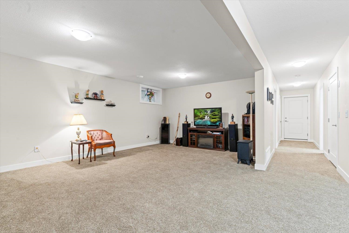 This beautiful home in Thomas Crossing a 55+ gated complex offers open-concept main floor plan w/ extended kitchen island, pantry, and S/S appliances & gas range. The primary bedroom features a beautiful 4 pc ensuite and spacious w/i closet. Downstairs you will find an additional bedroom, full bath, large rec room and extra storage. The double garage has an EV hook-up and epoxy flooring, w/ double driveway. Outside the extended patio provides an excellent setting for year-round enjoyment enhanced by a glass awning for extra light, electric patio shades, natural gas BBQ hookup, artificial turf and a fully fenced yard. The home is finished with professionally installed Gemstone exterior lighting. Land you own - not leased! Bareland strata fee $171.37/month.