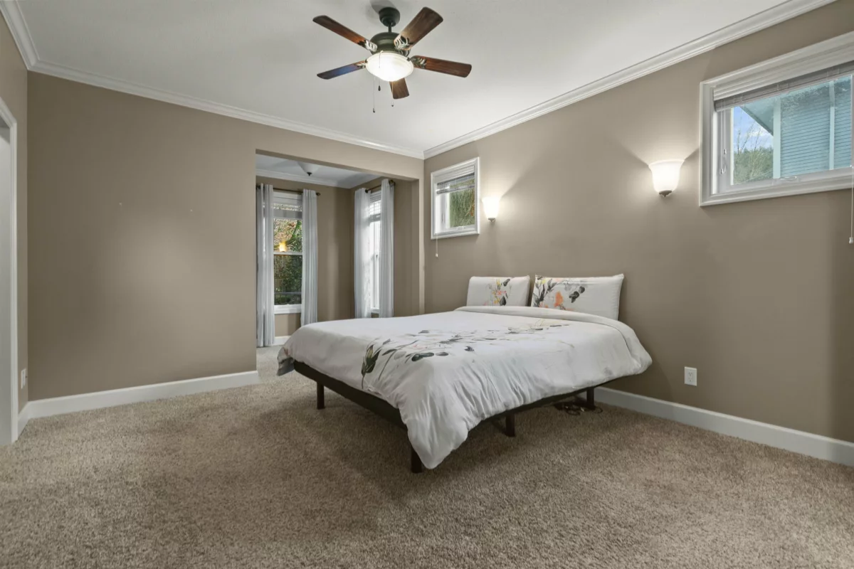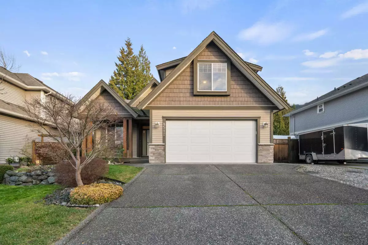 Unique and inviting floor plan tucked away on a quiet cul-de-sac in desirable Eastern Chilliwack! This 4 bedroom + loft, 3 bathroom home offers convenient main floor living and exceptional flexibility. The main level features a spacious primary bedroom with ensuite plus a second bedroom and full bathroom—ideal for guests & extended family. The bright kitchen showcases white cabinetry and island, hardwood flooring, and detailed crown moulding, flowing seamlessly into the dining area and great room with coffered ceilings and a gas fireplace. Upstairs, enjoy a versatile loft/flex space with electric fireplace. The basement offers two bedrooms, partially finished living space, and plenty of unfinished area ready for all your ideas. Step outside to a private fully fenced backyard with hot tub!