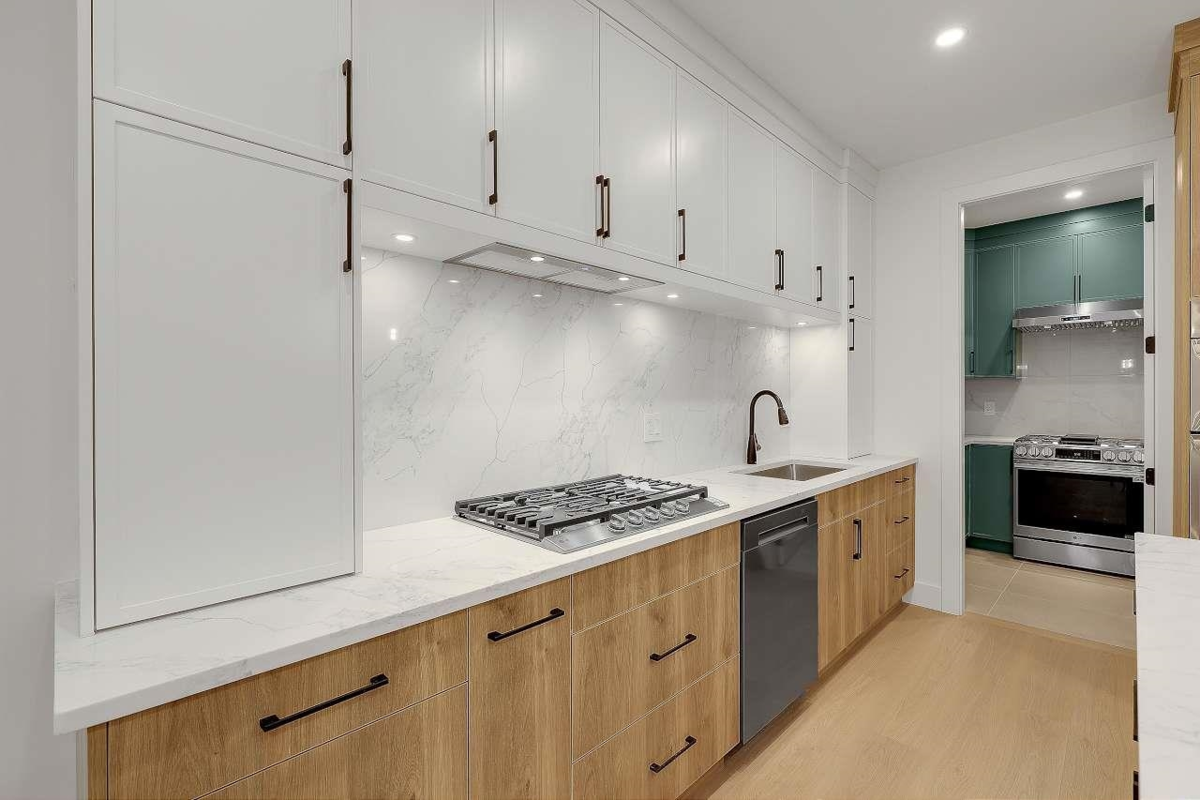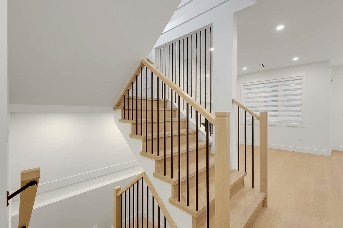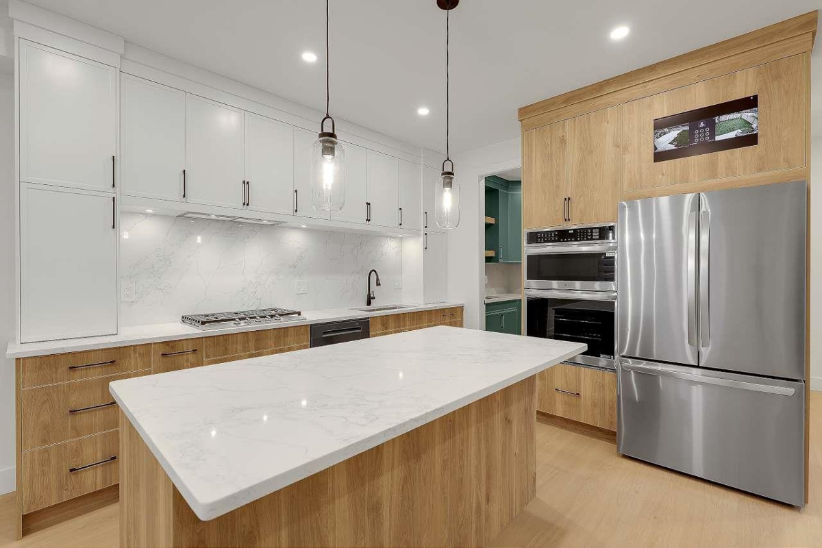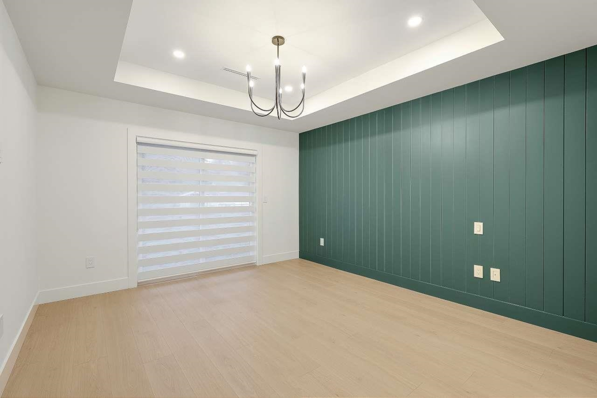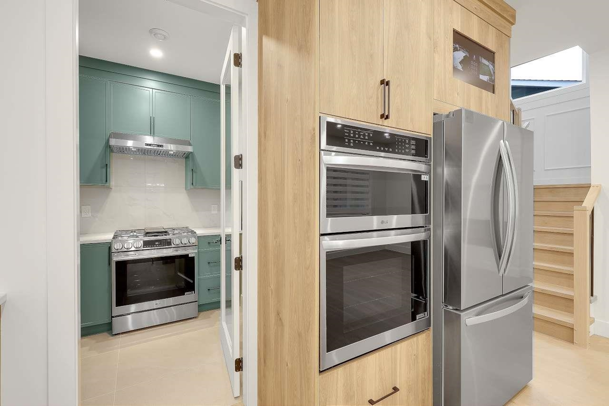 Brand New Duplex in North Delta backing onto private GREEN BELT!! w/ Legal suite and no strata fee! This stunning home w/full AC features 3 (or 4?) spacious bedrooms up , including a master bedroom with a private balcony and gorgeous en—suite. There is an office/formal Ivgrm and generous famroom on the main, and a media room in the basement—ideal for a home theatre: extra living space. The chef's kitchen boasts large island, a separate spice kitchen! ! Finished w/name brand light/plumbing fixtures, designer colors plenty of wall paneling this is the perfect home!
