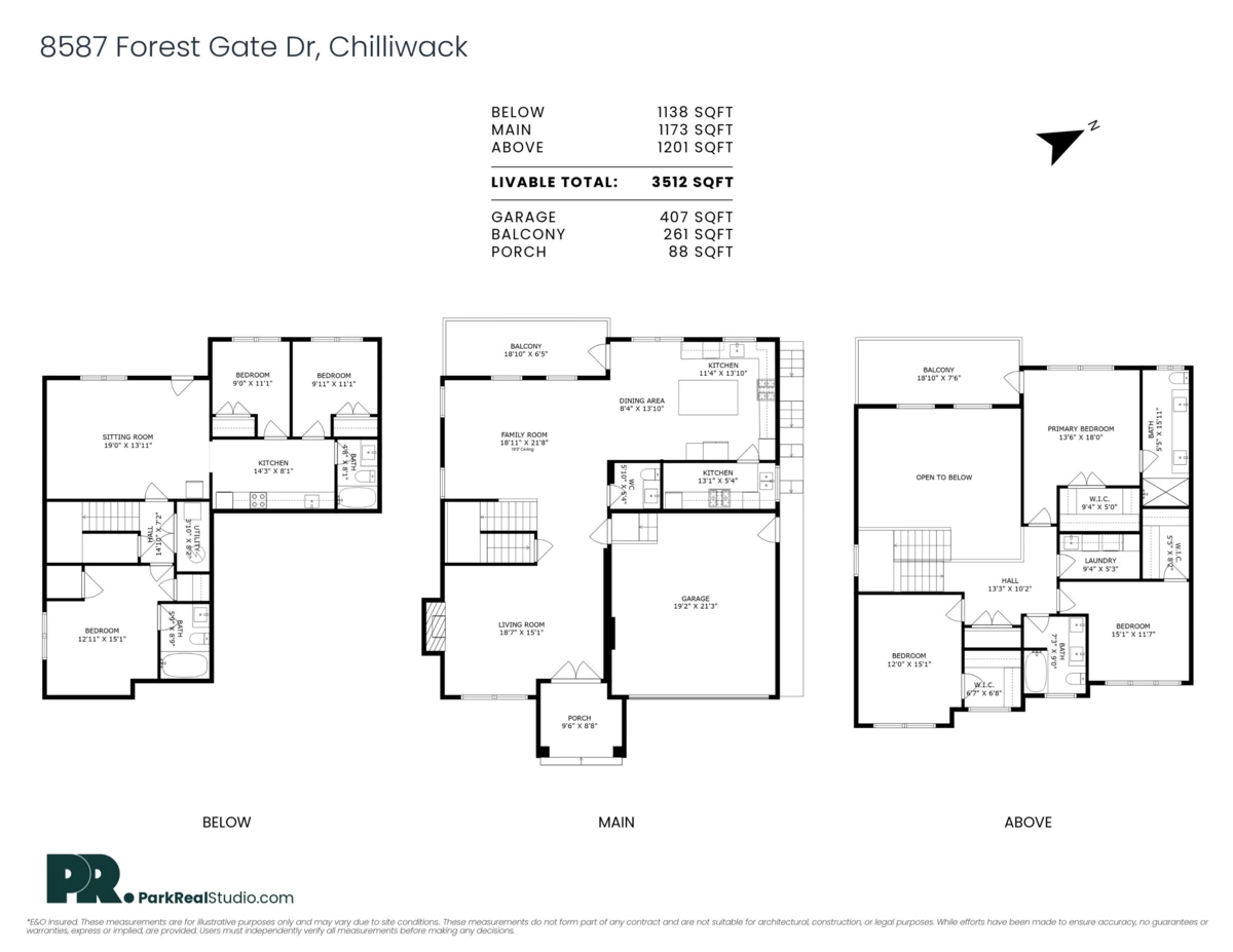 | Above Level | Primary Bedroom | 14' x 14' ft |