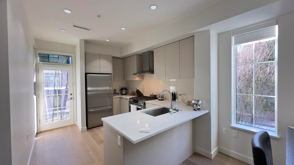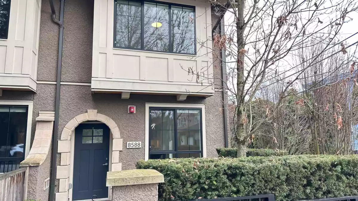 An outstanding, modern corner townhome on a peaceful, tree-lined street in Westside. Built with quality craftsmanship by Alabaster Homes, this 3-bedroom + den residence boasts a spacious design with 9’ ceilings on the main floor. A spacious primary bedroom with its own balcony, and a sleek open-concept kitchen equipped with premium Bosch appliances. Enjoy the comfort of A/C and the 2 parking stalls, 1 of which is equipped with an EV charging outlet. Just minutes from Churchill High School with its renowned IB program, as well as convenient access to transportation, shopping and foods.