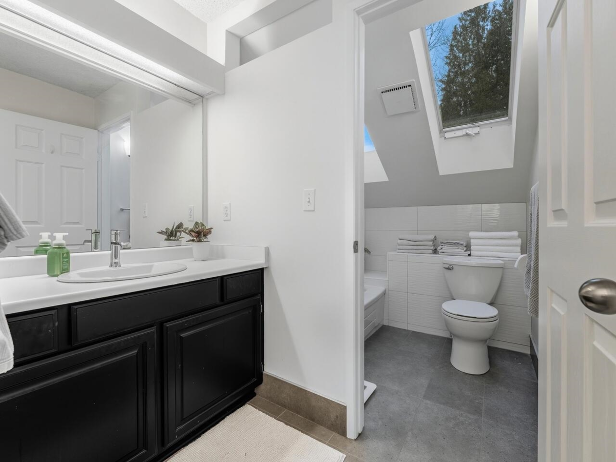 Spotless & Beautifully maintained and renovated home in unique natural setting. Take advantage of market conditions with this UNBEATABLE VALUE and get your 4-ever home. Recently updated quality finishes in kitchen & bathrooms as well as flooring and paint. Inviting living room with big windows & wood burning fireplace. Extra large primary fits a king & has an outstanding ensuite. All 3 bedrooms on same floor. Lower level family room leads out to PRIVATE & FENCED back yard. Carport is spacious with additional storage. Rare access to plenty of FREE parking! Rare amount of PETS allowed. Short walk to Forest Grove Elem. on a nature trail. Tucked away in a forest but MINUTES to SFU, High School, SKYTRAIN, Hwy 1. PRICED TO SELL - DON'T MISS OUT -- OPEN HOUSE SAT & SUN 2-4P --