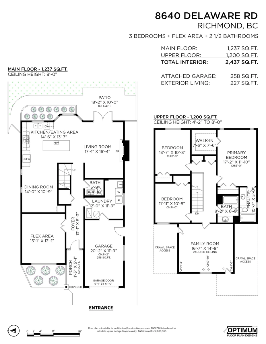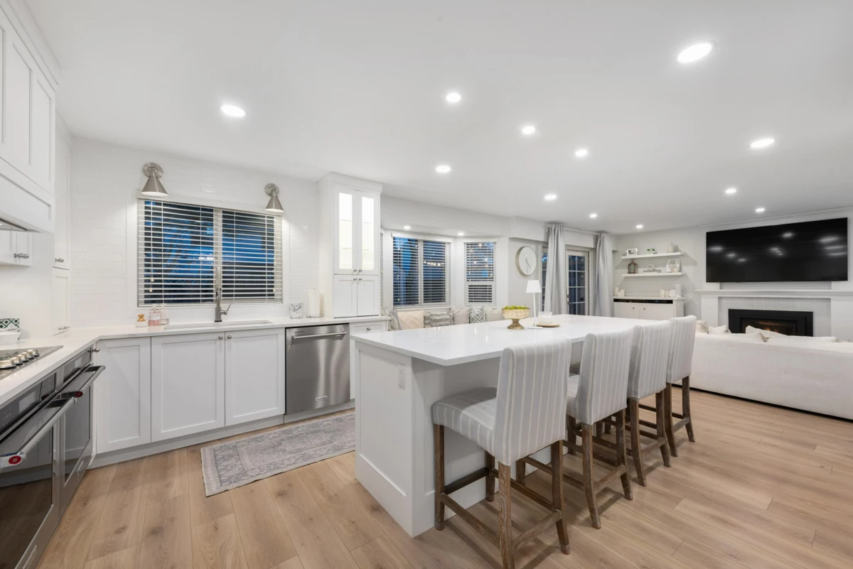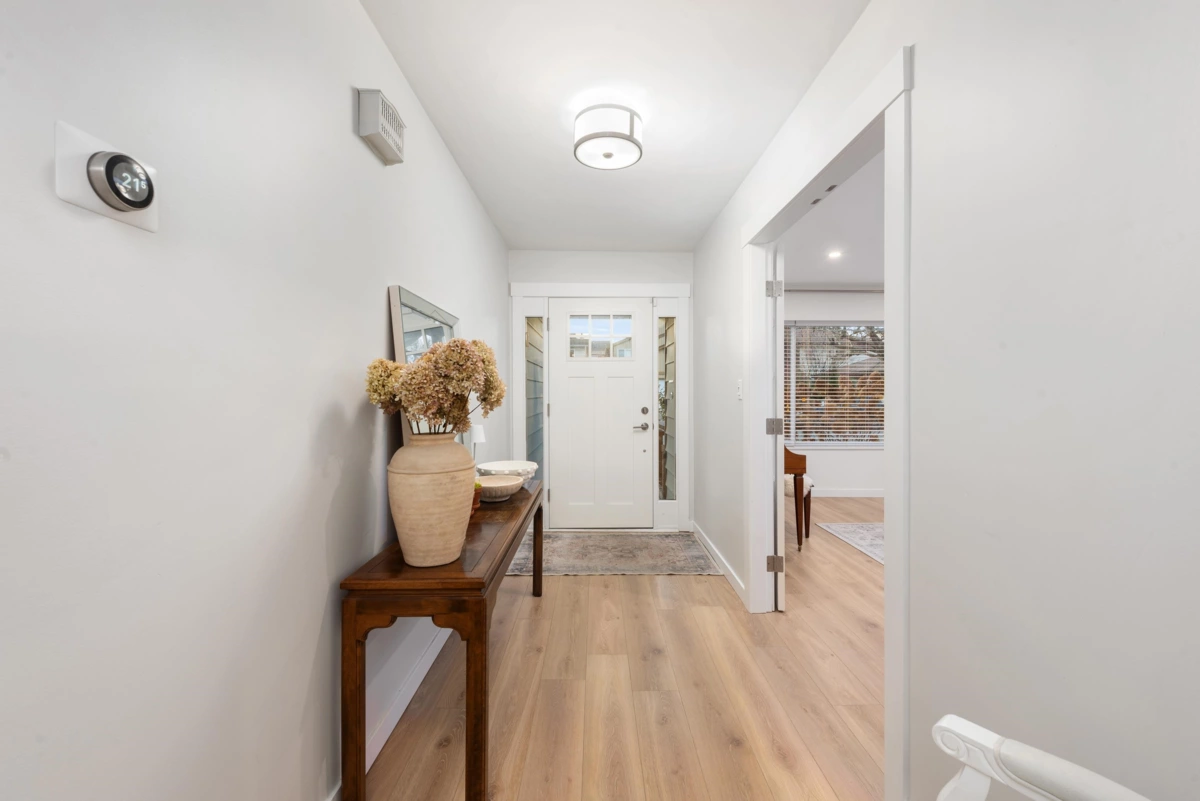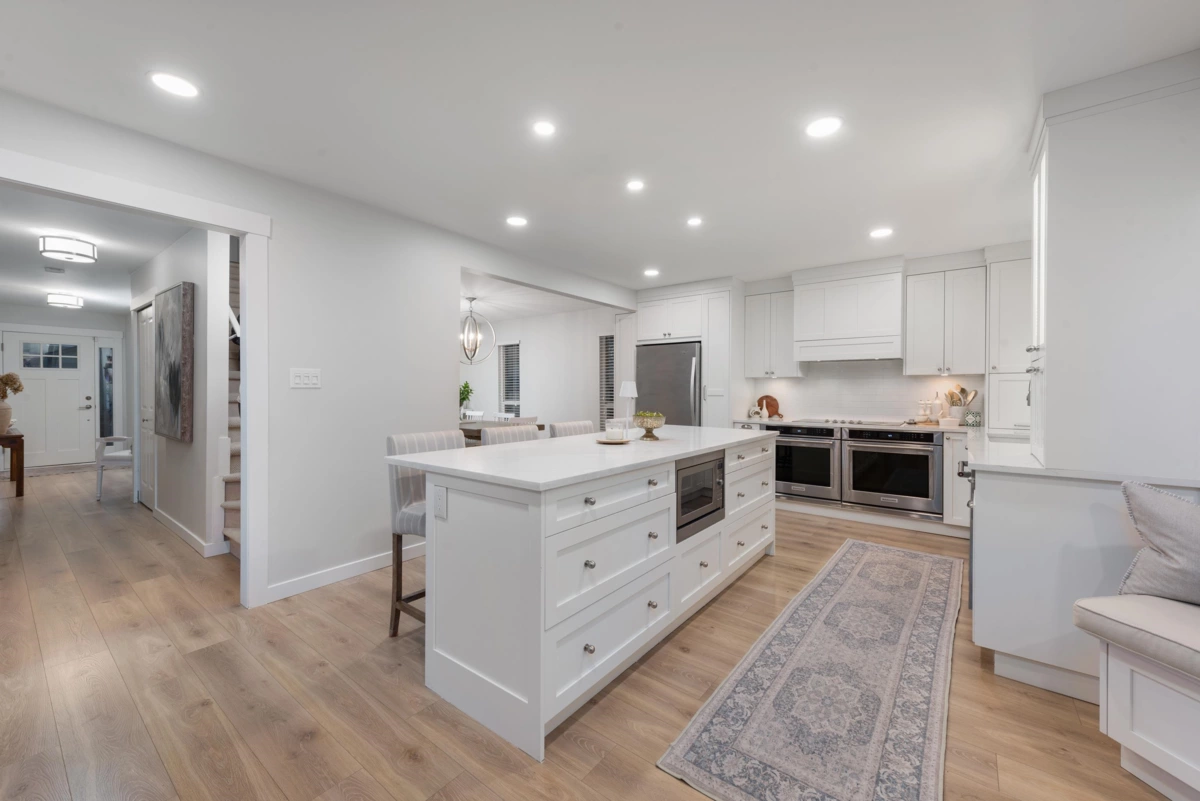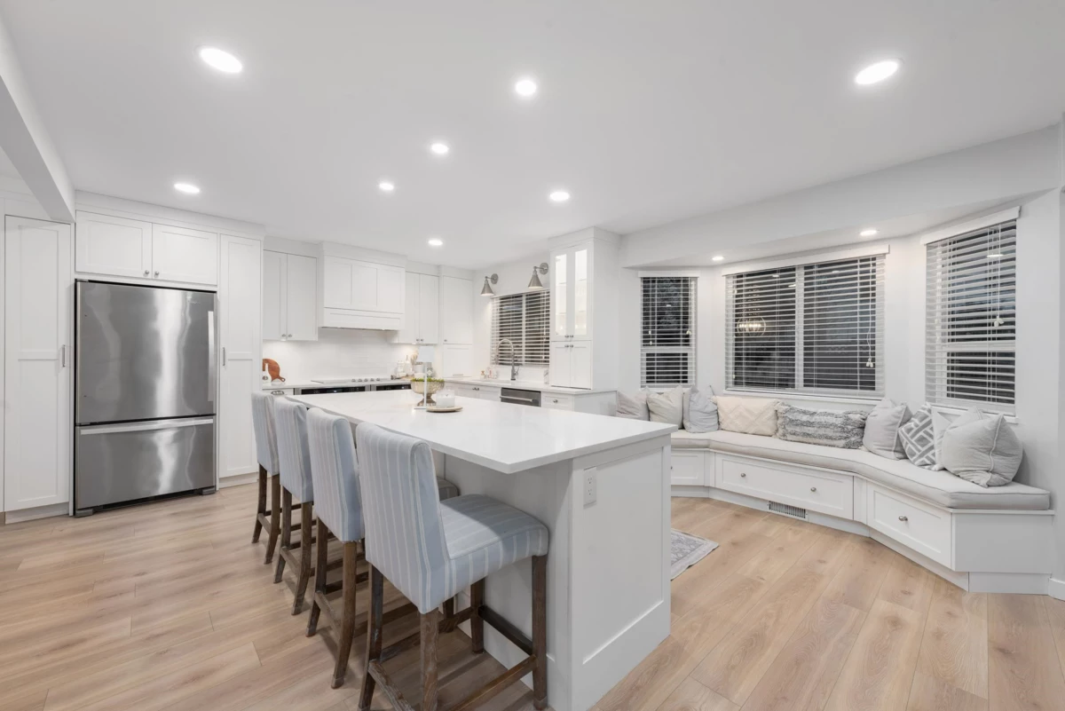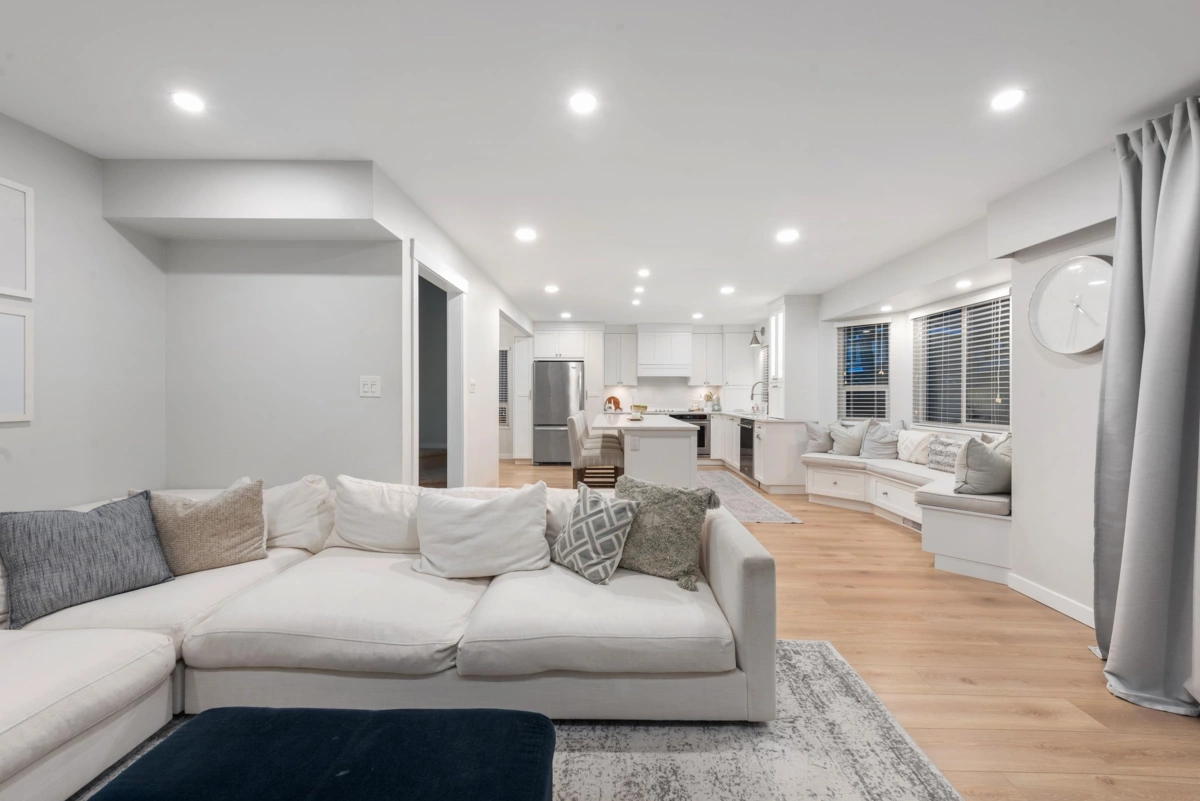 Beautifully updated & meticulously maintained family home offering over 2,400 sq.ft. of total interior space with 3 bedrooms + flex area & 2.5 bathrooms in a quiet Richmond neighbourhood. The bright main floor features an open-concept living & dining area with a cozy gas fireplace, a chef-inspired kitchen with white cabinetry, stone countertops, stainless steel appliances, & a large island, plus a versatile flex room ideal for a home office or playroom. Upstairs includes a spacious primary bedroom w/ ensuite and custom walk in, two additional bedrooms, & a family room with vaulted ceilings. Air conditioning installed for year-round comfort. Enjoy a private fenced backyard with patio, attached garage, dedicated laundry, & excellent storage close to schools, parks, shopping, & transit.