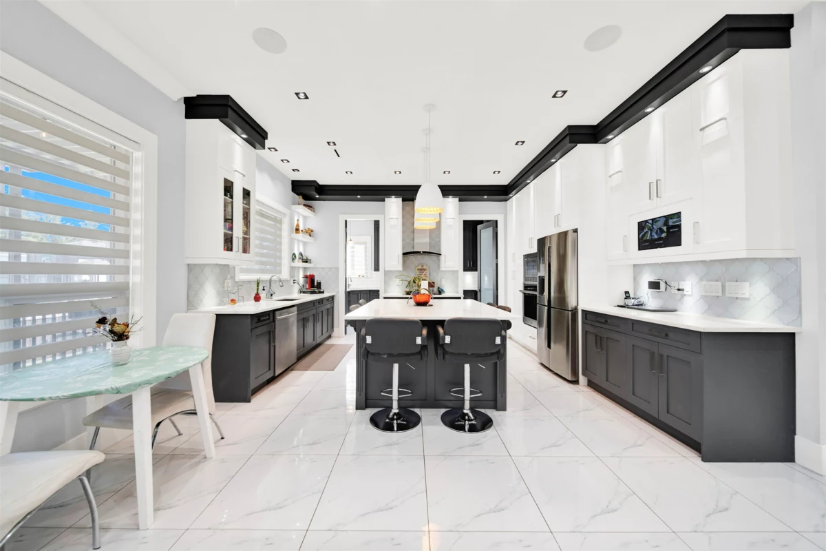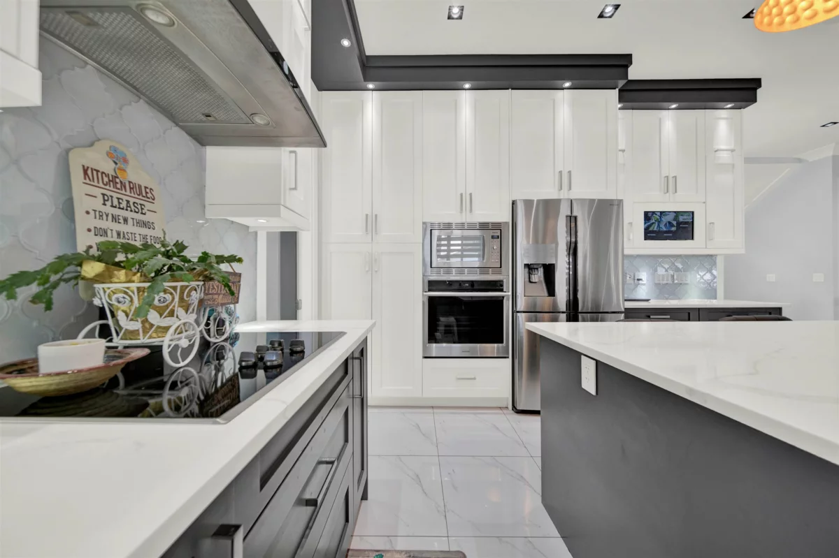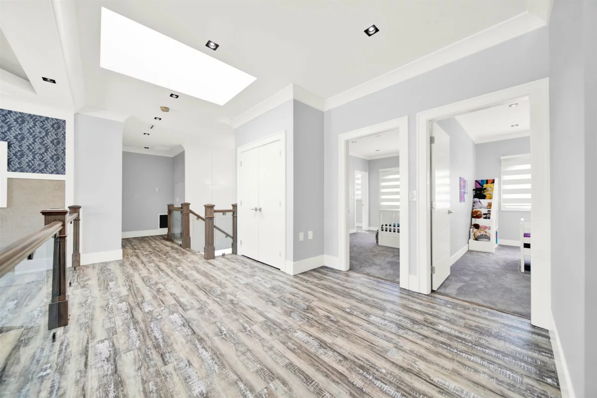 CUSTOM BUILT HOME IN FLEETWOOD This exquisite 8 br, 8 bath corner-lot luxury home offers over 6129 sq ft of meticulously designed living space on 7214 sq.ft. lot. The main floor a bright & open layout with grand living, family and dining areas, a Main kitchen, a spice kitchen, a master bedroom, a dedicated home office and a convenient powder room. Upstairs features generously sized 4 bedrooms with walk-in closets. Central air conditioning, radiant heating, an HRV system, security camera setup, and a high-efficiency hot water system. The fully finished basement includes two mortgage-helper suites (2-bedroom + 1-bedroom), each with its own entrance. Minutes from the future SkyTrain station, top-rated schools, parks, shopping malls and Fleetwood Recreation Centre.