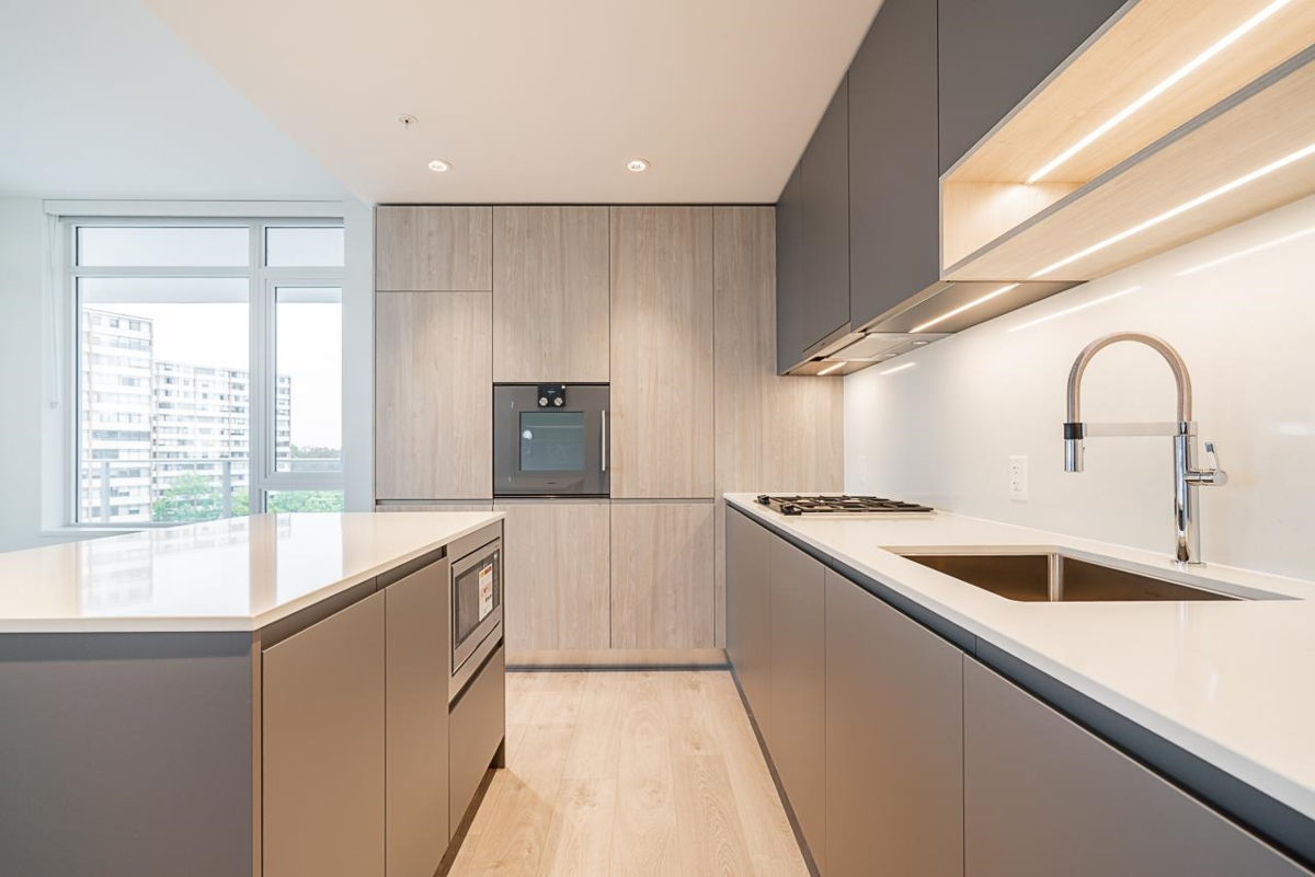 MOST SOUGHT-AFTER RARE corner unit. Brand new 2-bed, 2-bath, LR, office nook in 861sf offering breathtaking mountain views, city skyline and abundant natural light from all directions within; and out onto a private spacious wrap-around additional 368sf balcony. Includes 1 exclusive storage and 1 car park. Gourmet kitchen with precision-engineered German/Japanese appliances echoes beautifully in Italian cabinetry and quartz countertop. 24,000+sf resort-worthy amenities include fitness center; lounges; children’s play area; co-working spaces; and guest suites graced with park-like walkways and serene Sky Gardens. At the heart of Richmond, high-end shopping centre with SkyTrain connected, prestigious schools and city’s best attractions are all within steps. Open House: Sun Jan 25th, 2-4pm.
