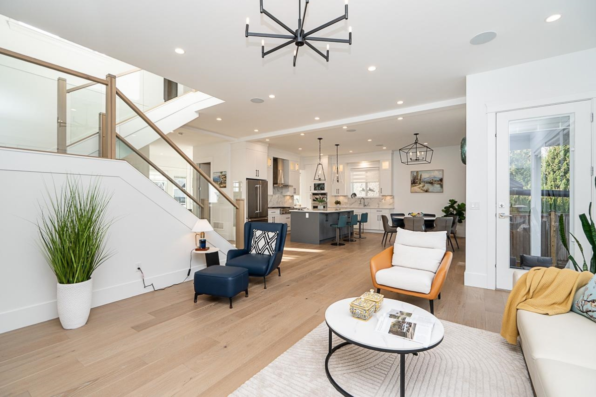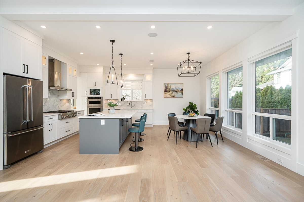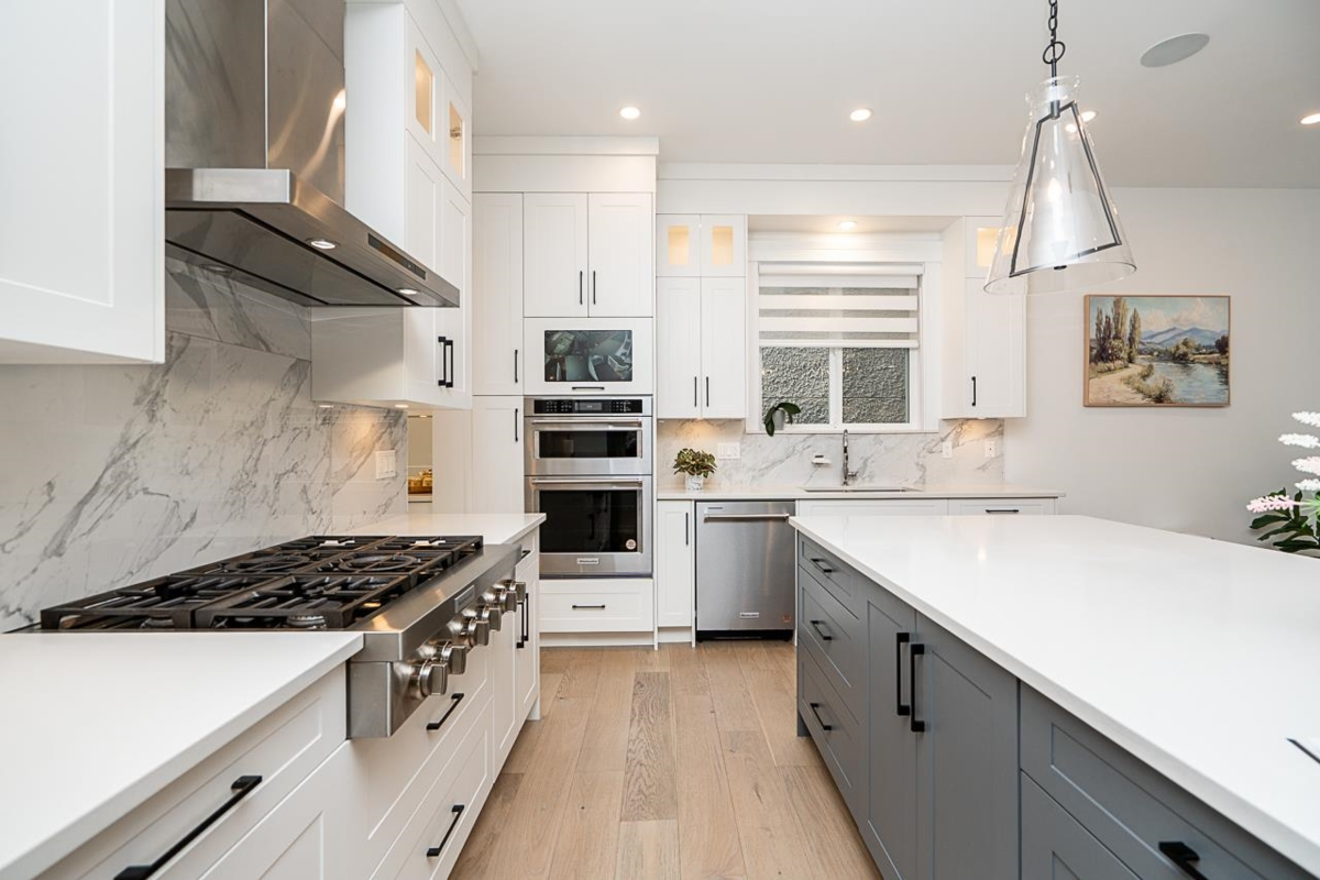 Situated on a family-friendly cul-de-sac in South Surrey, this home offers a peaceful living environment with a functional and flexible layout. Hardwood flooring on the main+upper levels adds warmth and durability, while the main floor features 10-foot ceilings, an open kitchen equipped with SS/S appliances, a quartz island, and a Butler’s Bar that creates a natural connection to the living area. Upstairs includes 3 bright bedrooms with bay windows and vaulted ceilings, highlighted by a primary bedroom with a spa-like ensuite. A flexible upper-level space works well as a home office or reading area. The basement provides a legal one-bedroom suite, a den and ample storage, offering added flexibility for extended family. Conveniently located close to shopping/schools/parks/beach/trails.