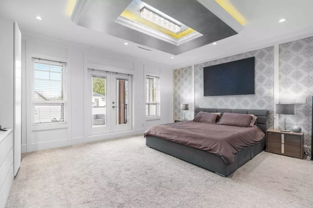 Welcome to a warm and inviting family home in the lovely South Arm area. This residence offers bright and comfortable living with AC, security system, HRV, built in vacuum, radiant heat, high ceilings and elegant crystal chandeliers. The main level is ideal for gatherings with spacious living and dining areas, with beautiful French doors that help control noise from travelling upstairs. All bedrooms feature their own ensuites, and the master is a true retreat with a large private balcony. A self contained two bedroom suite with its own entrance and laundry can serve as a MORTGAGE HELPER. This gated north south home has recently painted exterior wood and fencing. Situated in the Bridge/McRoberts school catchment and just minutes to Steveston Village and Ironwood.