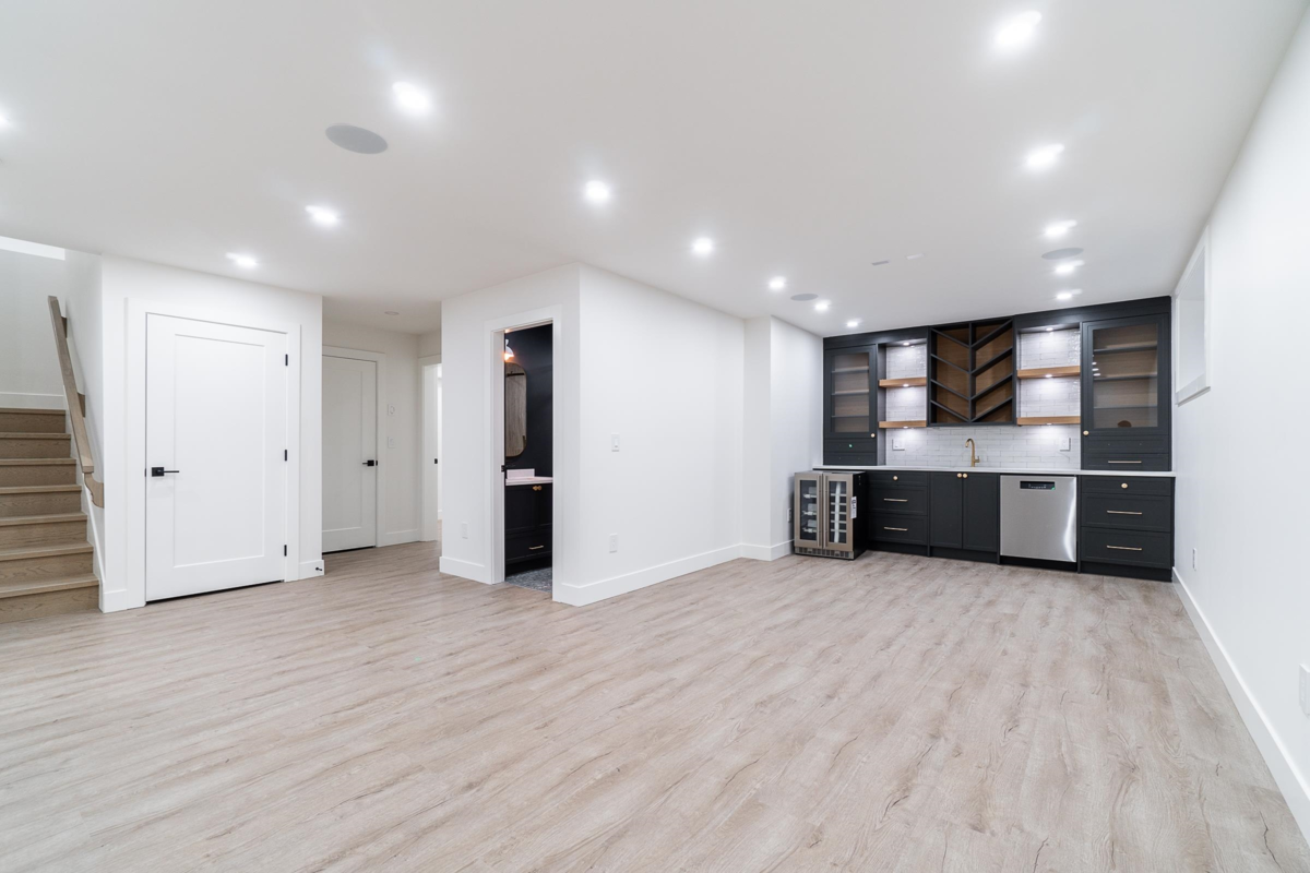 Welcome to a luxurious house offering comfortable living at an UNBEATABLE location. This home features spacious Living & Dining areas, a Family room, a master w/ ensuite, an office, and a spice kitchen on the main. Including a MASSIVE covered Deck which is like no other. Upstairs 4 bedrooms 3 bathrooms, including an extra spacious Master with a spa-like ensuite & walk-in closet. The expansive lower level boasts 3 bedrooms, a rec room with a bar, and a SUNKEN Patio great for entertainment. Crafted with HIGH-END finishes, a Double car garage, Radiant heating, A/C, hardwood flooring, and much more. Excellent opportunity to own a LUXURIOUS LIVING!!! ((2-5-10 YEAR WARRANTY))