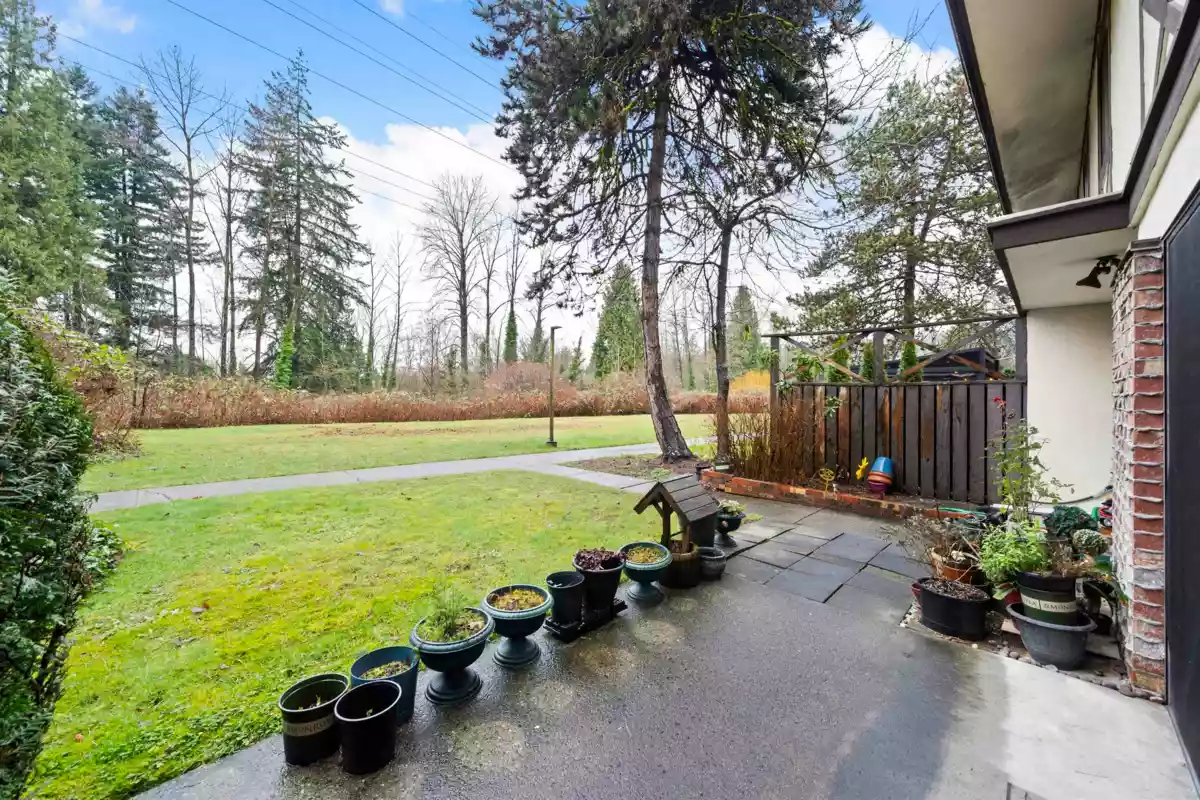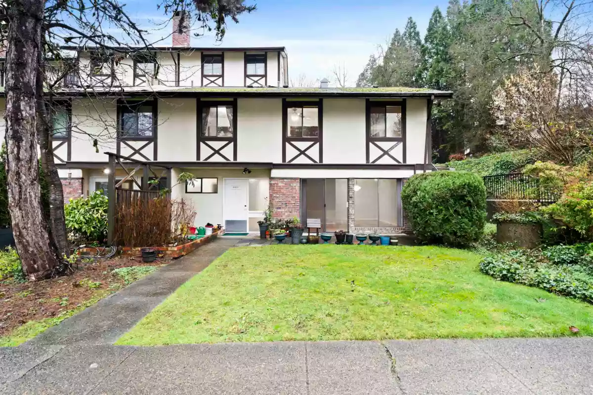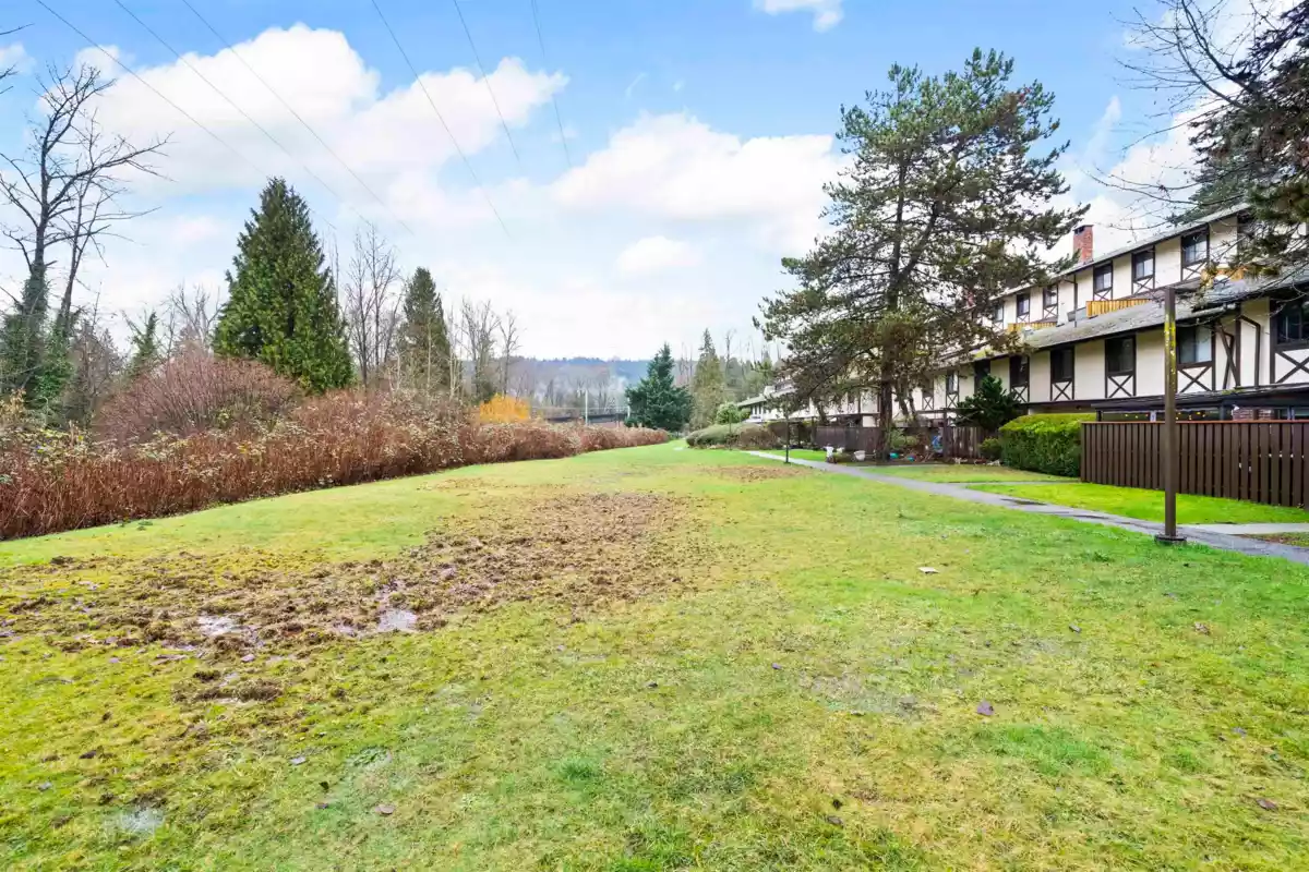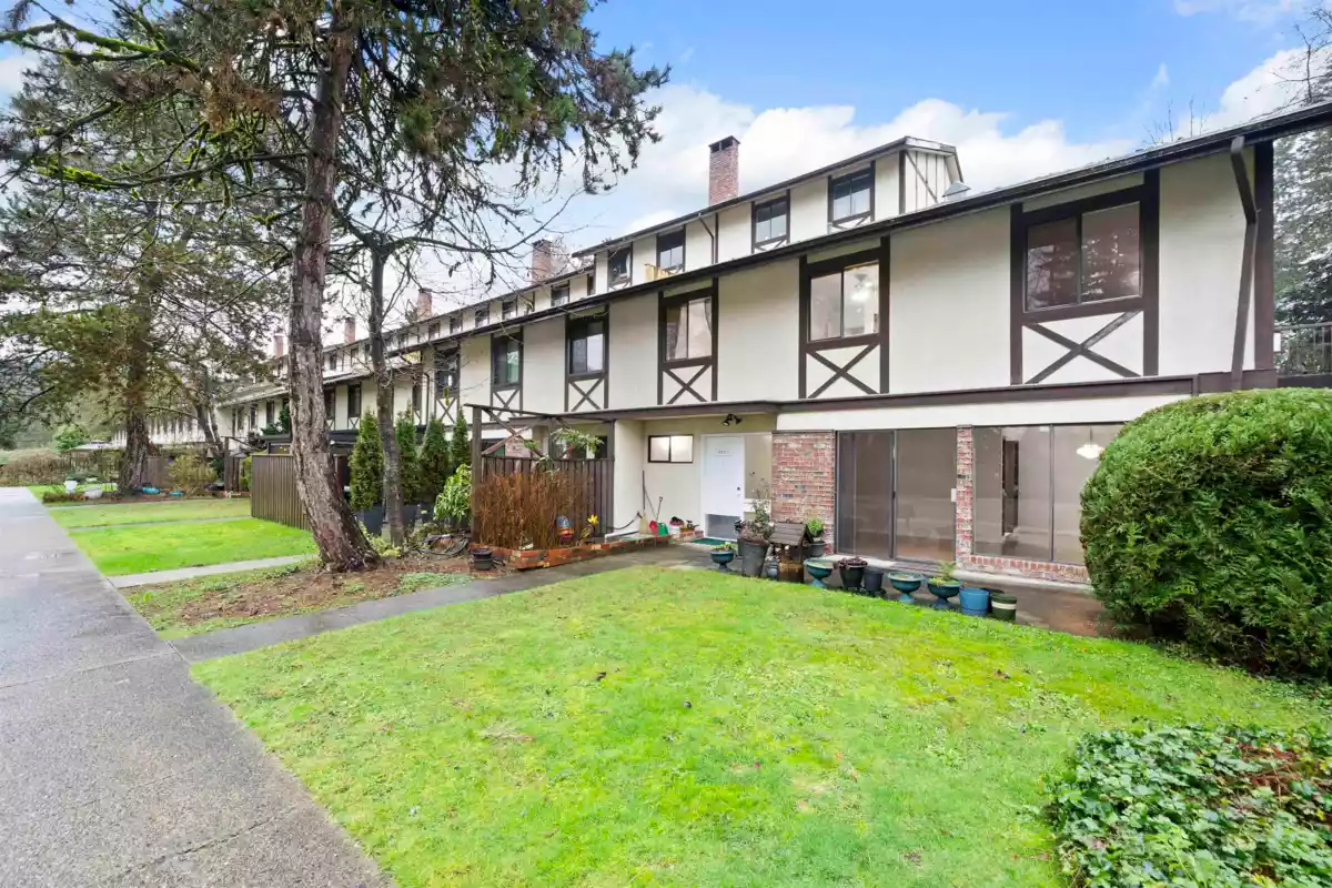 Welcome to Tudor Village. This rare 3 bedroom + den, 3 bath end-unit townhome backs onto a sprawling greenbelt - your own outdoor extension with endless space for kids to play, pets to roam, or simply to enjoy the privacy and greenery. The home has seen numerous upgrades over time, including updated flooring, paint, renovated bathrooms, & an upgraded balcony -making it truly move-in ready. Residents enjoy access to recently improved amenities such as an indoor pool, sauna, and a clubhouse ideal for gatherings. Unbeatable location just minutes from Lougheed SkyTrain, Bus Stop, Lougheed Mall, Costco, and Deer Lake Park. Heat and hot water are included in the strata fees, adding exceptional value. 1 underground parking spot. A great opportunity in a well-managed community, don't miss it!