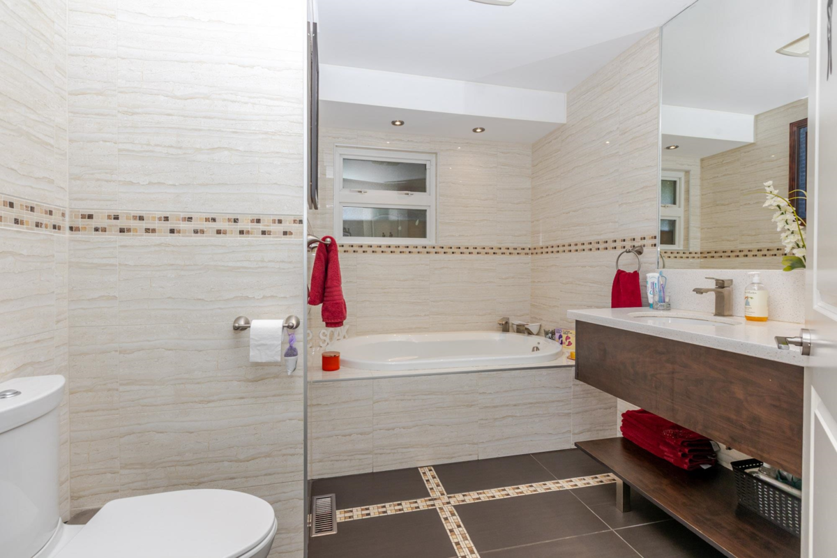 Welcome to Delwood! Beautiful home features 5 beds & 3 baths: OPEN-CONCEPT Bright, large Living room & kitchen with custom cabinetry, Granite & quartz countertop, Newer SS appliances. master bedroom w/ ensuite washroom & large walk-in shower. Downstairs: 2 (1.5 bedrooms that can be turned into 2 rental suites), cozy fireplace & tons of storage room, spacious patio. STUNNING VIEW of Mt. Seymour, Grouse & Cypress mountain. Front & backyard garden w/ fruits, vegetables, flowers & MORE!. Plenty of parking, Dog park nearby. Easy to access Nordel & Alex Fraser Bridge, Highway 17, & River Rd. This home is not a cookie cutter home. You have to get inside to believe the special features of the bathrooms and just the feel of this home!