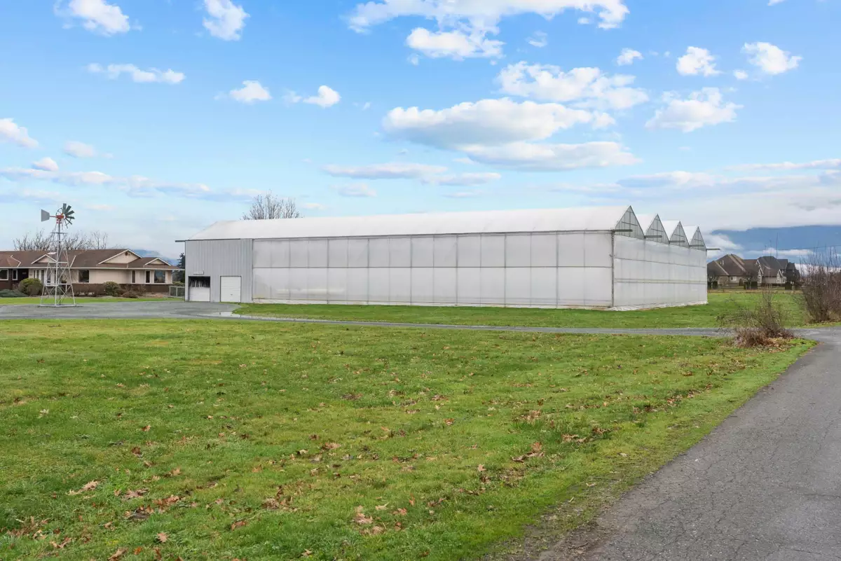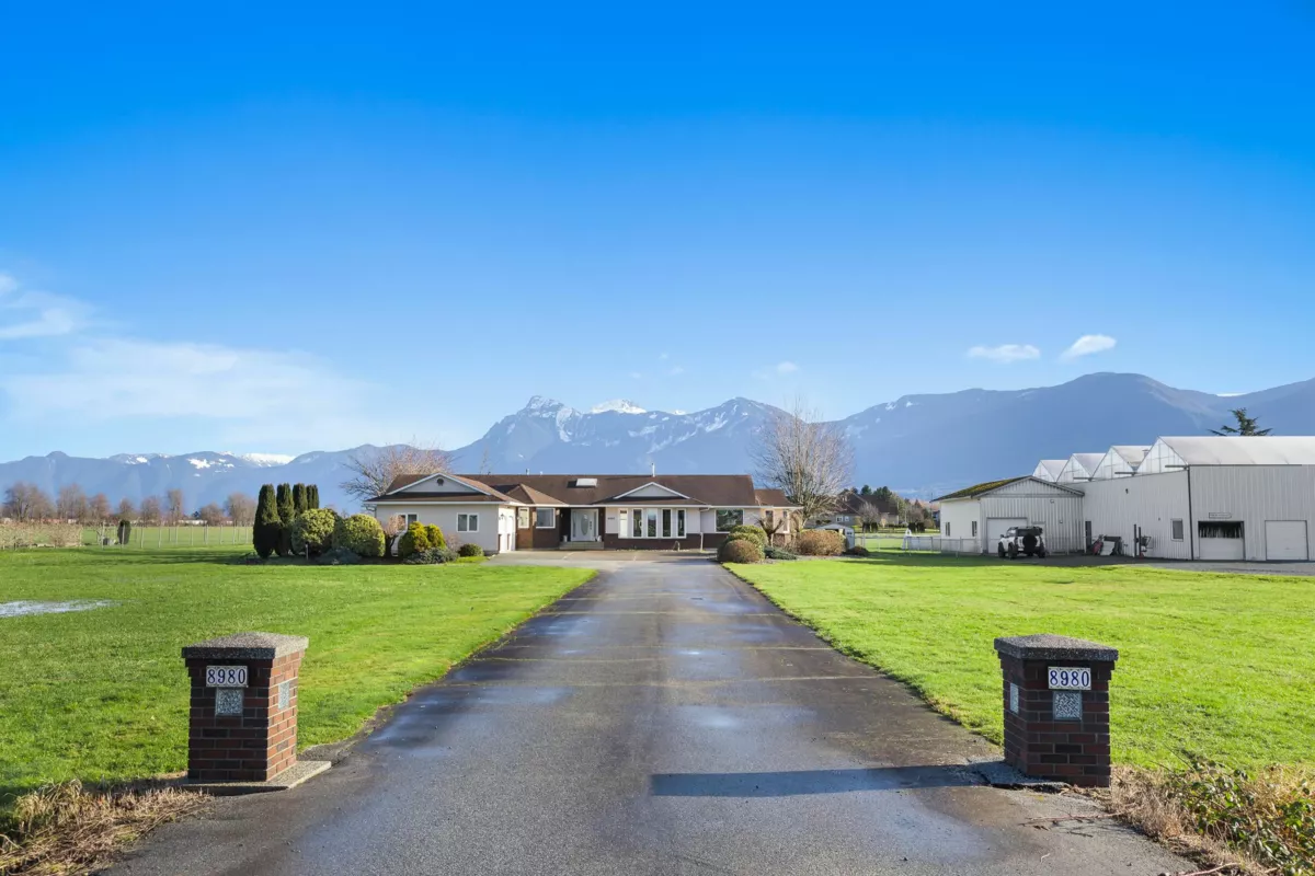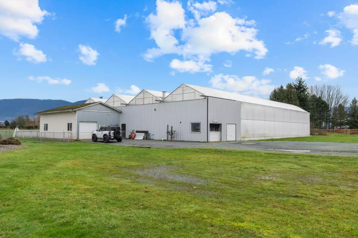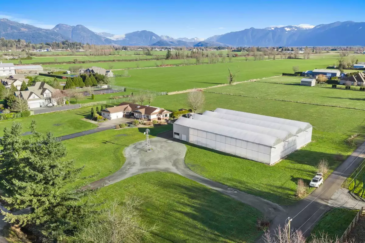 House & Greenhouse on 4.24 acres! This well-maintained 3 bed/3 bath rancher offers 2,696 sq. ft. of living space, with stunning views of Mt. Cheam from the east facing kitchen, nook, family room, and covered patio. Enjoy modern comfort with central A/C, newer flooring, a high-efficiency furnace, and brand new windows. Relax or entertain on the large covered patio, and enjoy the added privacy of a walkout patio off the primary bedroom (perfect for a future hot tub!). Excellent potential for additional farm income with a 96’ x 120’ poly gutter-connect greenhouse currently producing cucumbers and tomatoes, with materials available for a 24’ x 120’ expansion. With two road frontages and three driveways, access is excellent for business use, deliveries, and farm gate sales.