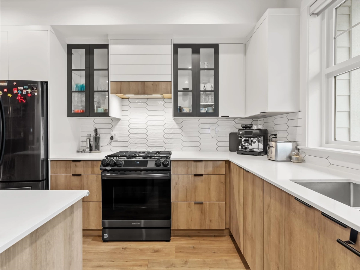 DON'T MISS THIS ONE! This upgraded 3-bedroom + flex (optional 4th bedroom), 3-bath townhome delivers exceptional comfort and convenience throughout. Enjoy full smart-home integration, centralized A/C, a smart thermostat, motorized blinds, and a chef-style kitchen equipped with premium smart appliances. Two outdoor spaces—including one with a BBQ hookup—plus a double side-by-side garage with epoxy flooring and an EV charger truly elevate the home. Oversized king-capacity laundry machines, custom feature walls, and a top-tier location steps from Semiahmoo Trail Elementary, École Elgin Park Secondary, parks, trails, and major routes make this the perfect family retreat. Discover contemporary living at its finest in the heart of South Surrey.
