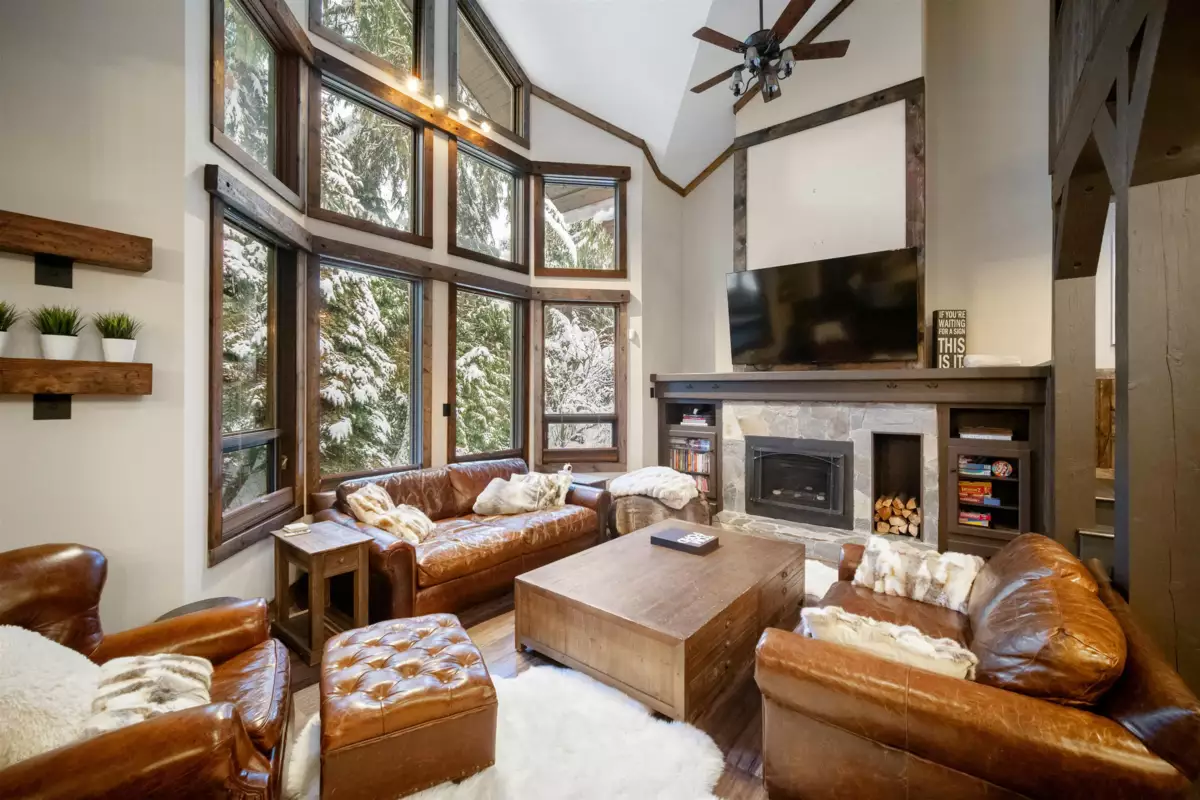Welcome to Baseline. This fully renovated townhome is being sold fully furnished and turnkey, offering a rare move in ready opportunity. Vaulted ceilings and floor to ceiling windows create a bright, open living space that backs onto a quiet greenbelt. The home features three bedrooms plus a loft and a bunk room / den, providing flexible space for family and guests. Relax by the fireplace or unwind in your private hot tub after a day outdoors. Additional features include a spacious two car garage and heated crawlspace for all your Whistler gear. Located directly across from Alpha Lake Park with beach access and tennis courts, and within walking distance to Whistler Mountain ski lifts, this home delivers an exceptional four-season lifestyle. NO SHORT-TERM RENTALS.