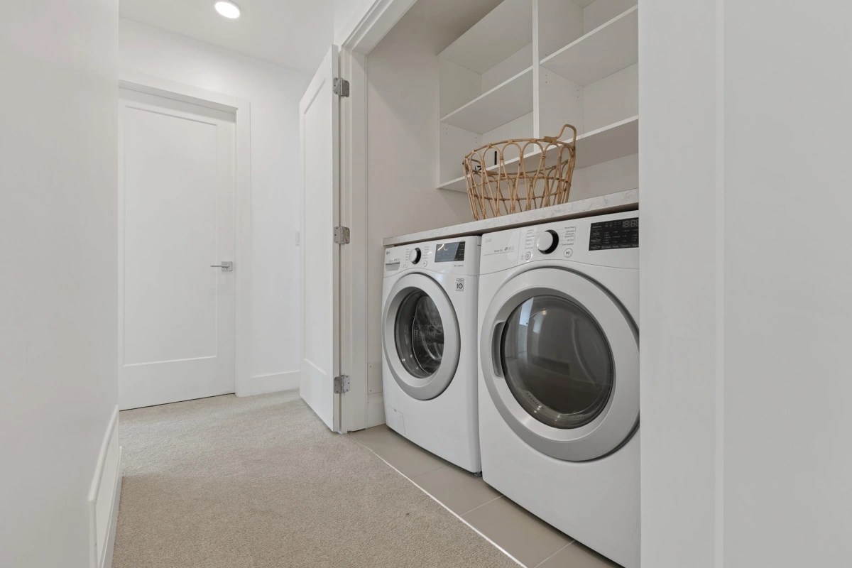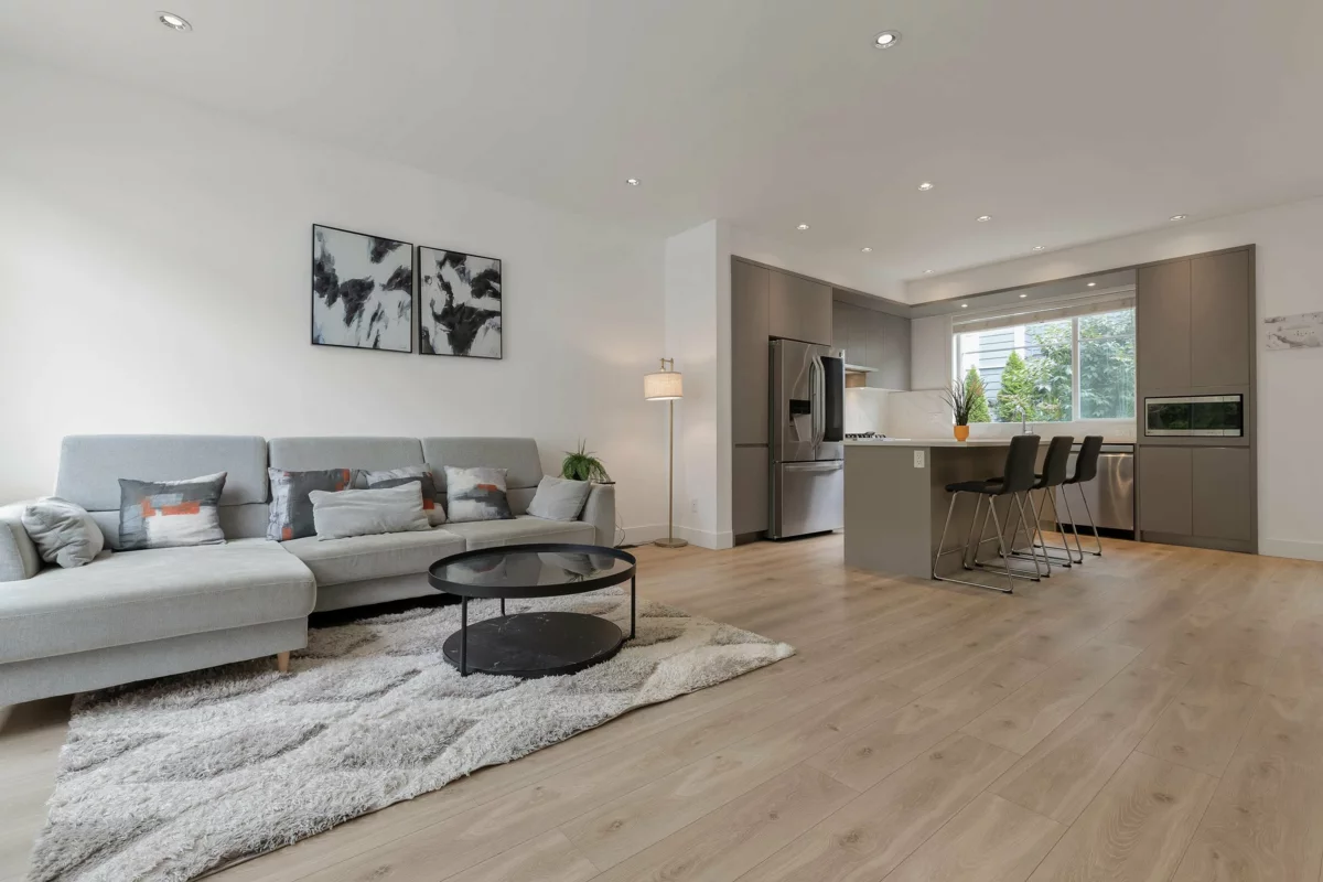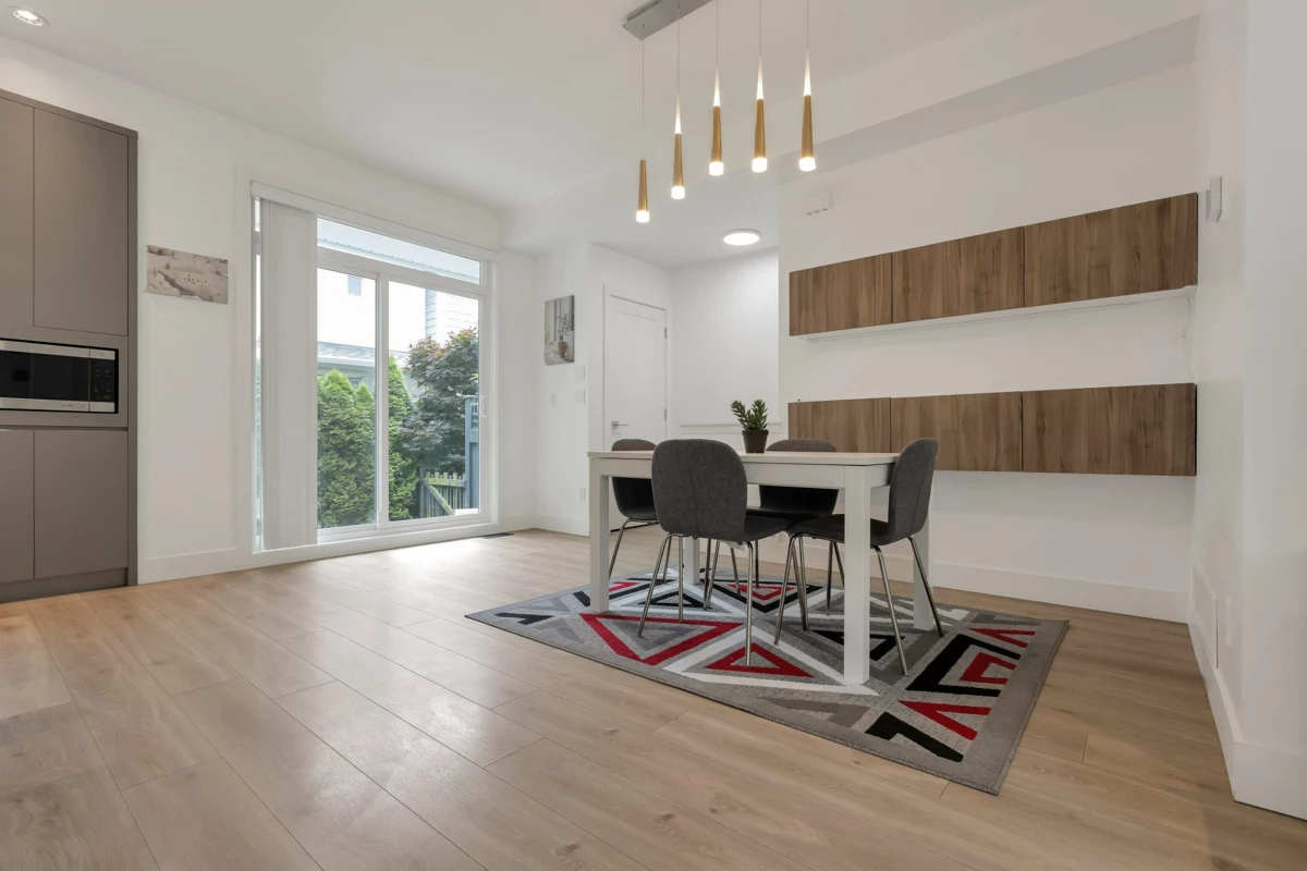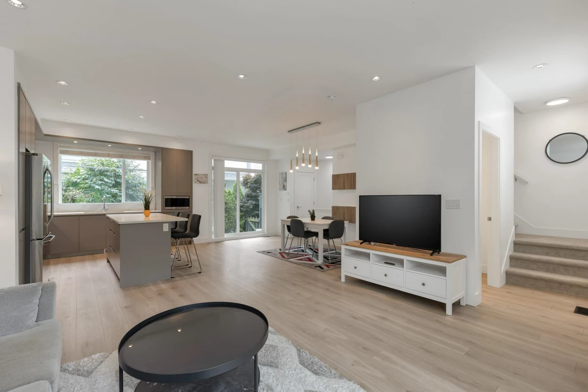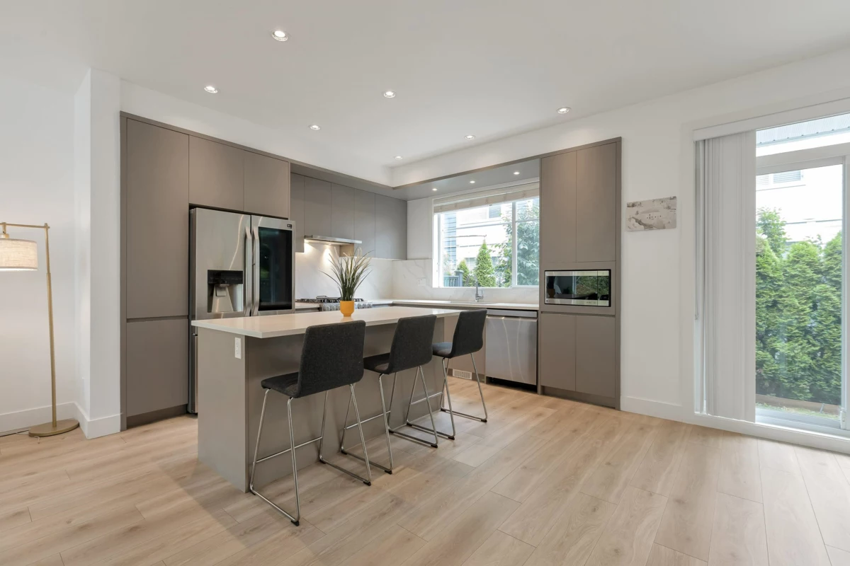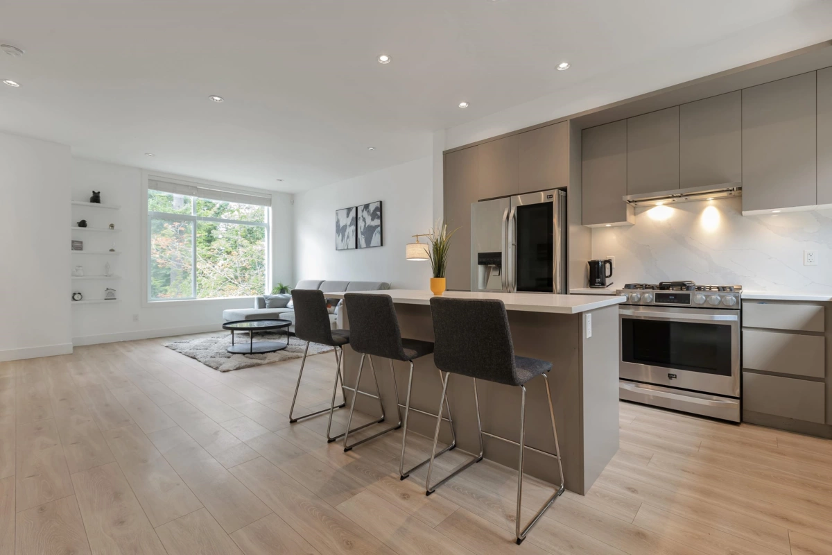 Welcome to Carson – Where Style Meets Convenience! This modern 3 bed, 3 bath townhome offers 1,406 sq.ft. of open-concept living with a bright living and dining area. The chef-inspired kitchen features a gas range, LG SmartThinQ appliances, designer lighting, and a large island—perfect for entertaining. Upstairs, enjoy spacious bedrooms with high ceilings, creating an airy and comfortable retreat. Step outside to a private landscaped backyard, and enjoy added comforts such as central A/C, forced-air heating, laminate flooring, and a side-by-side double garage with epoxy flooring. Located in the heart of Grandview, just steps to schools, parks, the Aquatic Centre, shopping, dining, and transit
