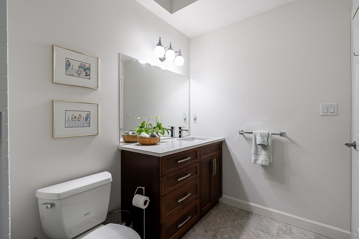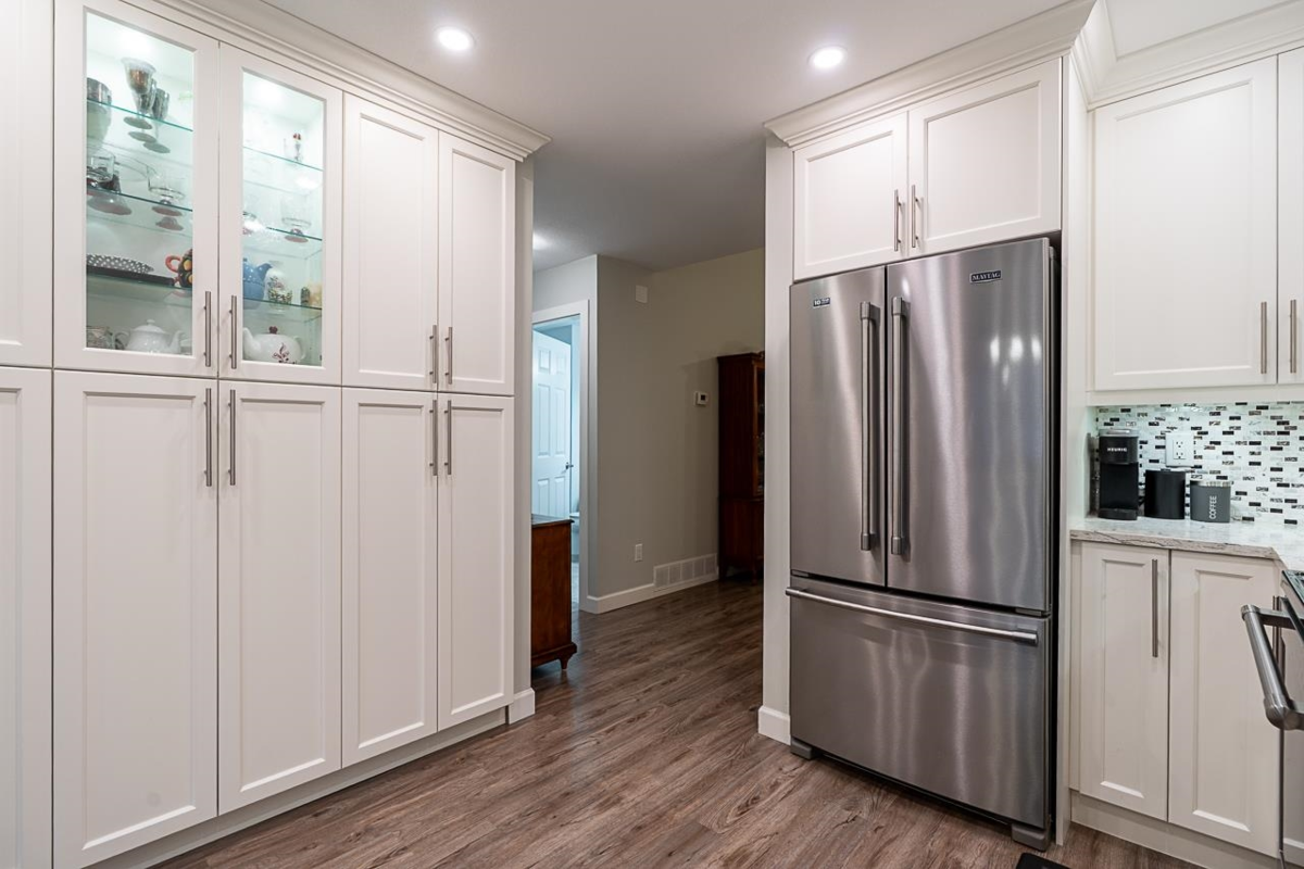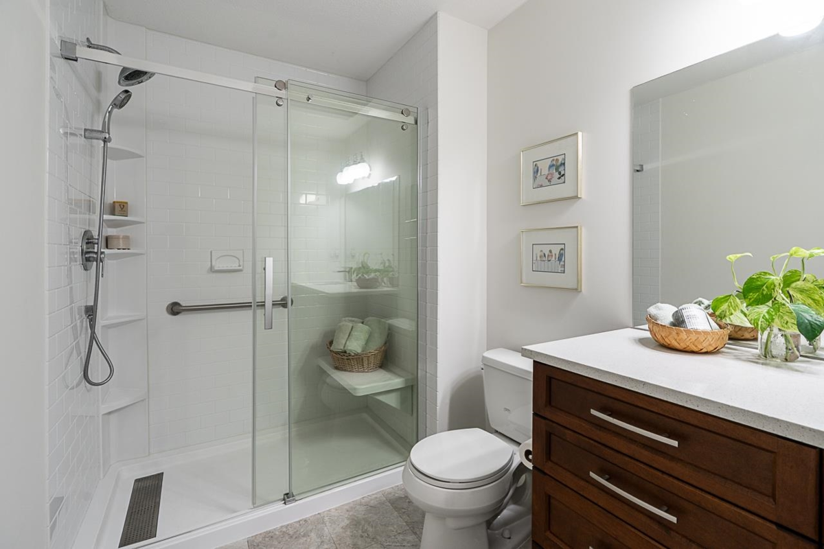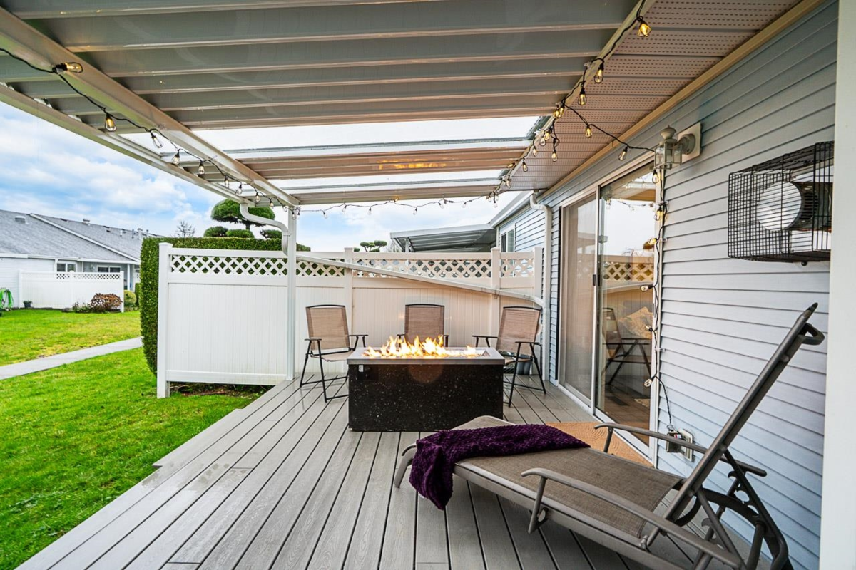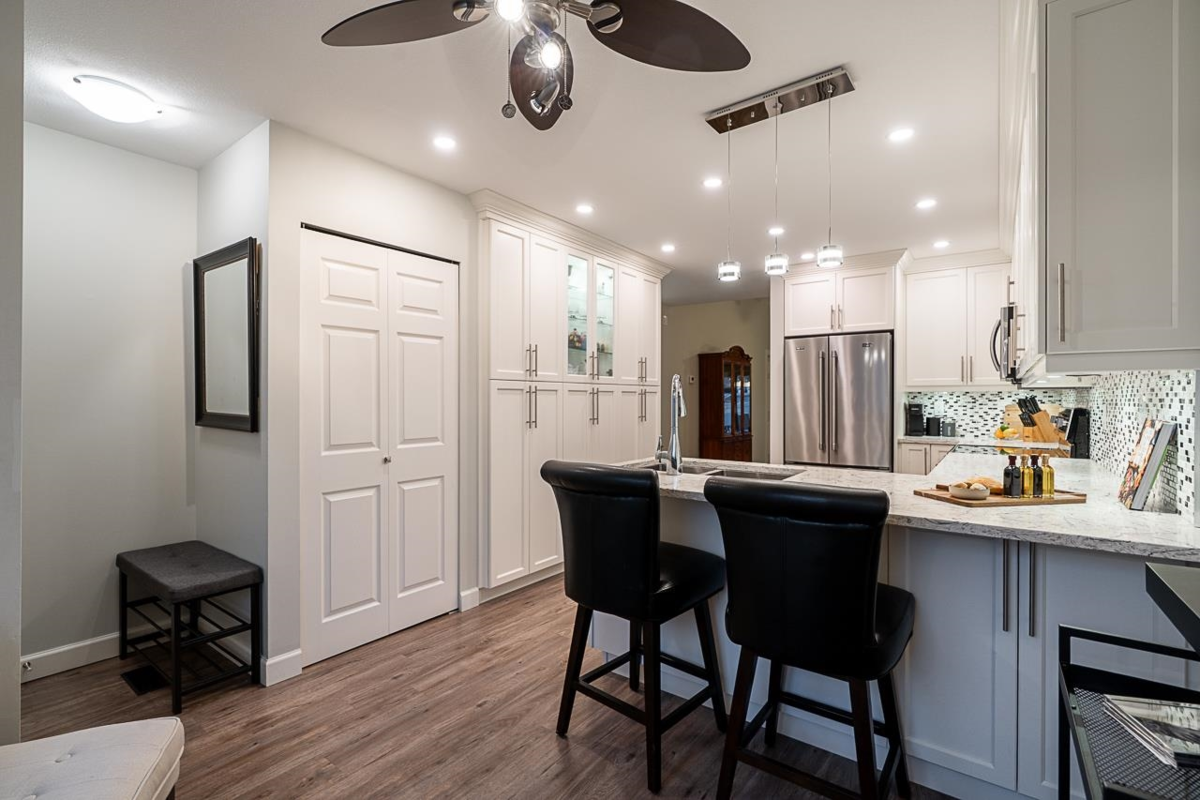 Welcome to St. Georges Village, a vibrant cooperative 55+ social community. This turn-key rancher townhome offers total peace of mind with re-piping, a newer efficient furnace/hot water. The interior features an airy layout with spacious rooms, vaulted ceiling, wheelchair access. Completely updated with laminate flooring throughout, modern walk-in shower in main bath + 2pc ensuite, newer paint fireplace insert & stone surround, white shaker kitchen with ample storage built-in cabinets, quartz countertop & breakfast bar, stainless steel appliances & a cozy eating/reading nook. Enjoy the large south-facing, covered, low maintenance vinyl deck year round! Close to shopping, Maple Ridge Leisure Centre & an abundance of eateries, and just a short walk to public transportation.
