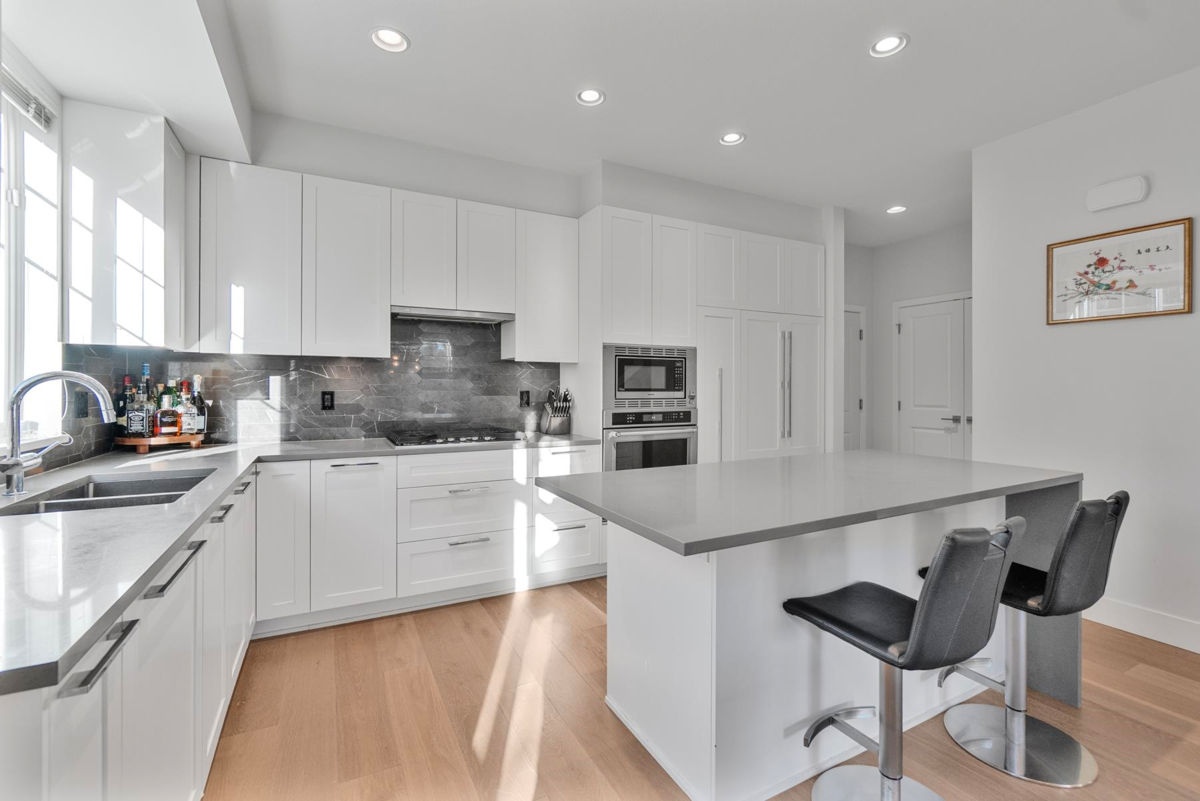 Incredibly rare end-unit townhome at Polygon’s Hadleigh on the Park offering 5 bedrooms and 4.5 bathrooms, a true standout. The bright open main floor features 9’ ceilings and oversized windows flooding the home with natural light. The gourmet kitchen boasts stone countertops and exceptional cabinetry, storage you’ll never outgrow. A rare highlight: main-level access from your side-by-side double garage, no stairs, no hassle. Upstairs offers 4 spacious bedrooms, 3 baths, and laundry, including a spa-like primary, 2nd bedroom with its own ensuite & 2extra large bedrooms. The lower level delivers ultimate flexibility with 5th bedroom+ media/rec room, built-in bar, sound system, full bath & extra storage. Homes like this don’t wait, this is the one people wish they’d acted on sooner.