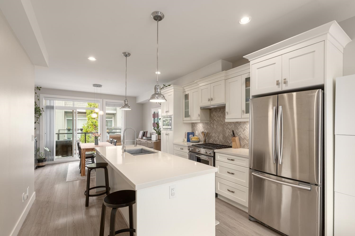 Welcome to Village Gardens — a boutique townhome community in the heart of Ladner Village. This rare 4-bedroom, 4-bath home offers the best layout in the complex with nearly 1,500 sq ft of living space. The bright and inviting main level is ideal for entertaining, featuring 9’ ceilings, a gourmet kitchen with large island, ample space for a full-size dining table, and a living room with an upgraded electric fireplace and integrated TV wiring. A full bathroom and bedroom on the ground floor make an ideal guest suite or private office, while three bedrooms upstairs include a spacious primary with walk-in closet and ensuite. Entertain outdoors with the largest balcony in the complex with gas BBQ hookup, or relax in the sunny south-facing fenced patio. Includes a 2-car side-by-side garage.
