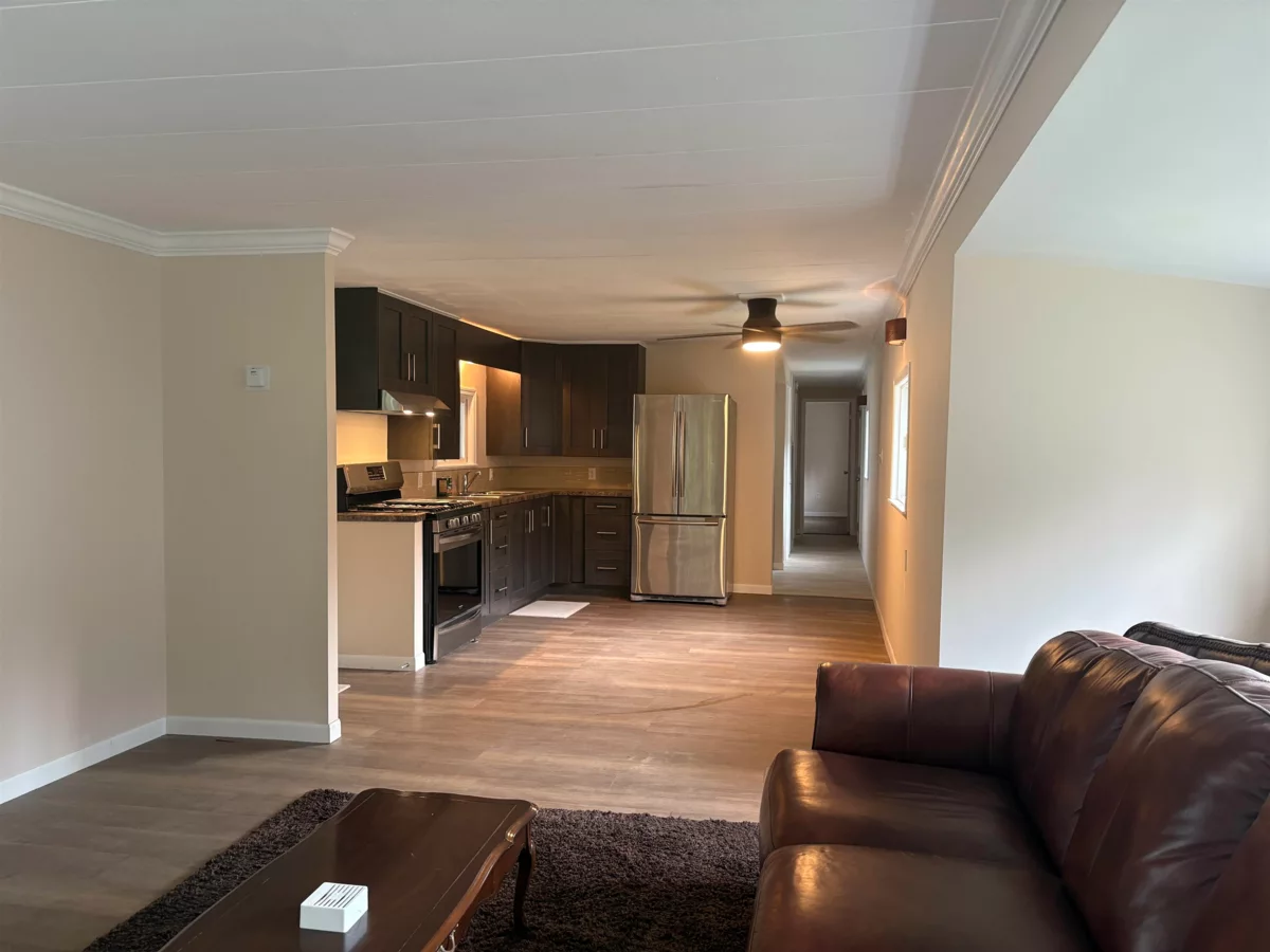 Nicely renovated 1 bedroom plus den, 1 bath mobile home in quiet adult oriented park. This home features quality laminate flooring, stainless steel appliances, large covered deck, storage shed, vinyl siding, vinyl windows and more. Don't miss this excellent and affordable opportunity. Pad rent $850. Quick possession possible.