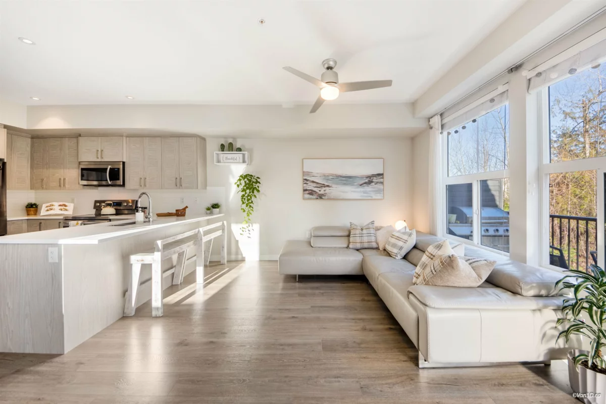 Situated in the most desirable location of Willoughby and built by reputable VESTA, Kensington Lofts is right in the heart of Latimer Heights, a vibrant 74-acre master-planned community. Impressively large 2323 sqft, 3bed+flex. End unit in prime location of the complex: distancing between neighbours and lush green backyard offer serenity and enhanced privacy. Lovingly cared for by the current owners. Oversized windows invite tons of natural light. Very low strata fees. 10’ ceiling master. EV ready. BBQ bib on balcony. Wide side by side garage with pad that fits 2 trucks. The best school catchment: walk to Josette Dandurand Ele and Yorkson Creek Mid, and only 5min drive to RE Mountain Secondary. Easy commuting with just 3-minute drive to #1 Hwy and 8 min walk to Carvolth Exchange. Must See!