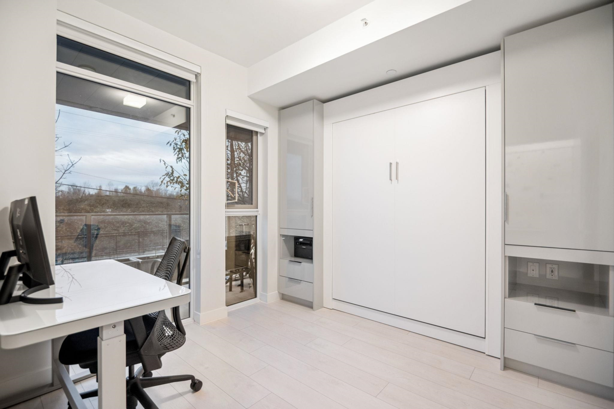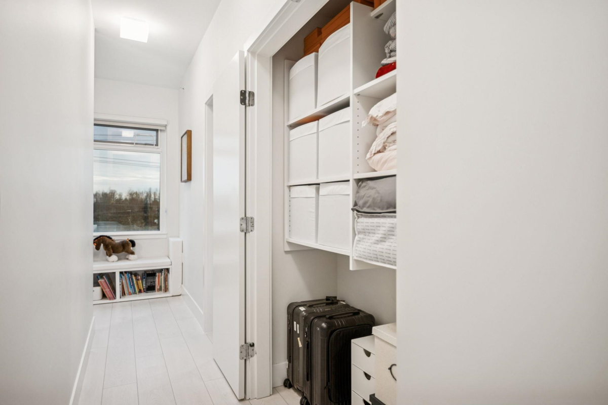 Exceptional opportunity to own a brand-new-condition corner townhouse in River district's privilege town at Avalon Park 3, enhanced with valuable owner-added upgrades including custom shelving, Silhouette blinds, folding bed at guestroom and an extra-large private storage room purchased separately by the owner. This home features an excellent floor plan with a bright, spacious living room and white toned kitchen opening to a 177 sqft patio, two upper-level bedrooms each with ensuite bathrooms, a private rooftop deck, and a lower level with an additional bedroom, a den, and ample storage. Perfectly designed for comfort, flexibility, and modern living.