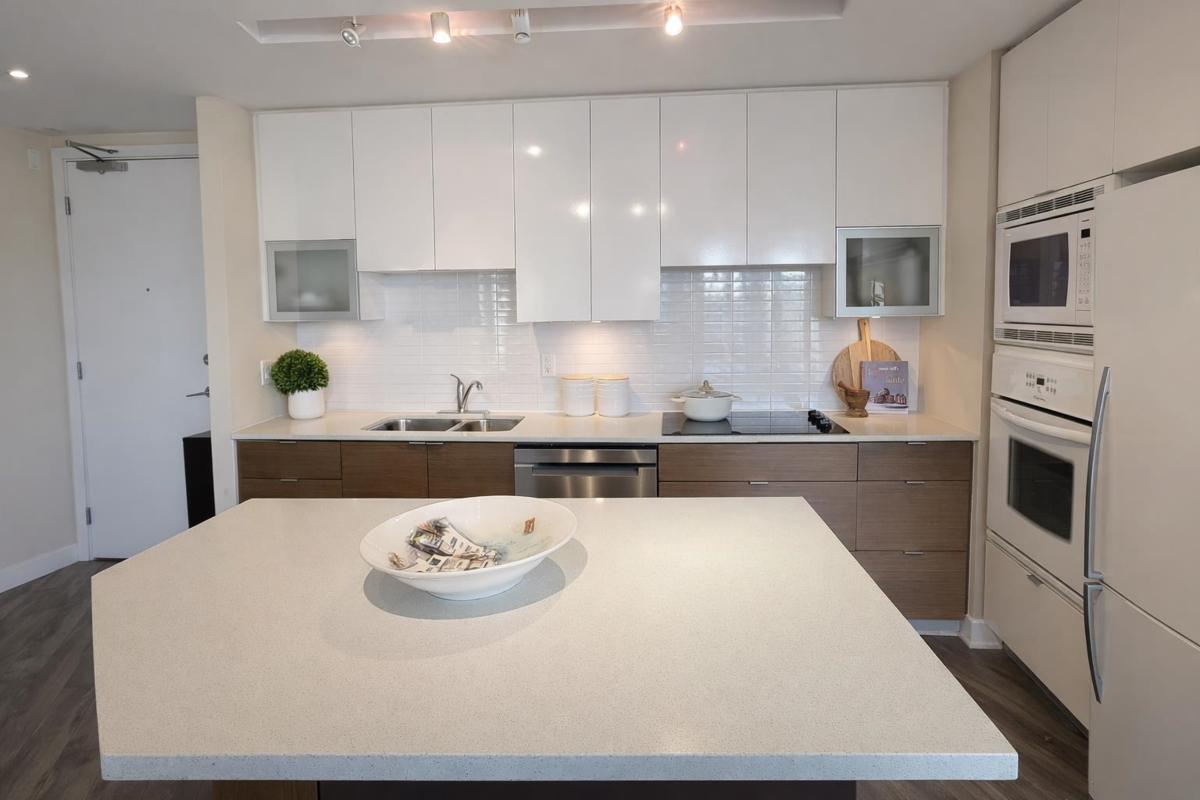 Welcome to Ventana, a premier concrete residence in the heart of Lower Lonsdale. This bright 2 bed, 2 bath corner suite offers 800 sqft with floor-to-ceiling windows framing harbour, city mountain views. The open layout features a modern kitchen with quartz counters, sleek cabinetry gas cooktop, flowing into a light-filled livingdining area with access to a private balcony. The spacious primary bedroom includes dual closets a 4-piece ensuite, while the second bedroom is perfect for guests or a home office. Building amenities include a fitness centre, lounge, bike storage caretaker. Comes with 1 secure parking, storage locker visitor parking. All this just steps to the Shipyards District, Seabus, Lonsdale Quay, shops dining.
