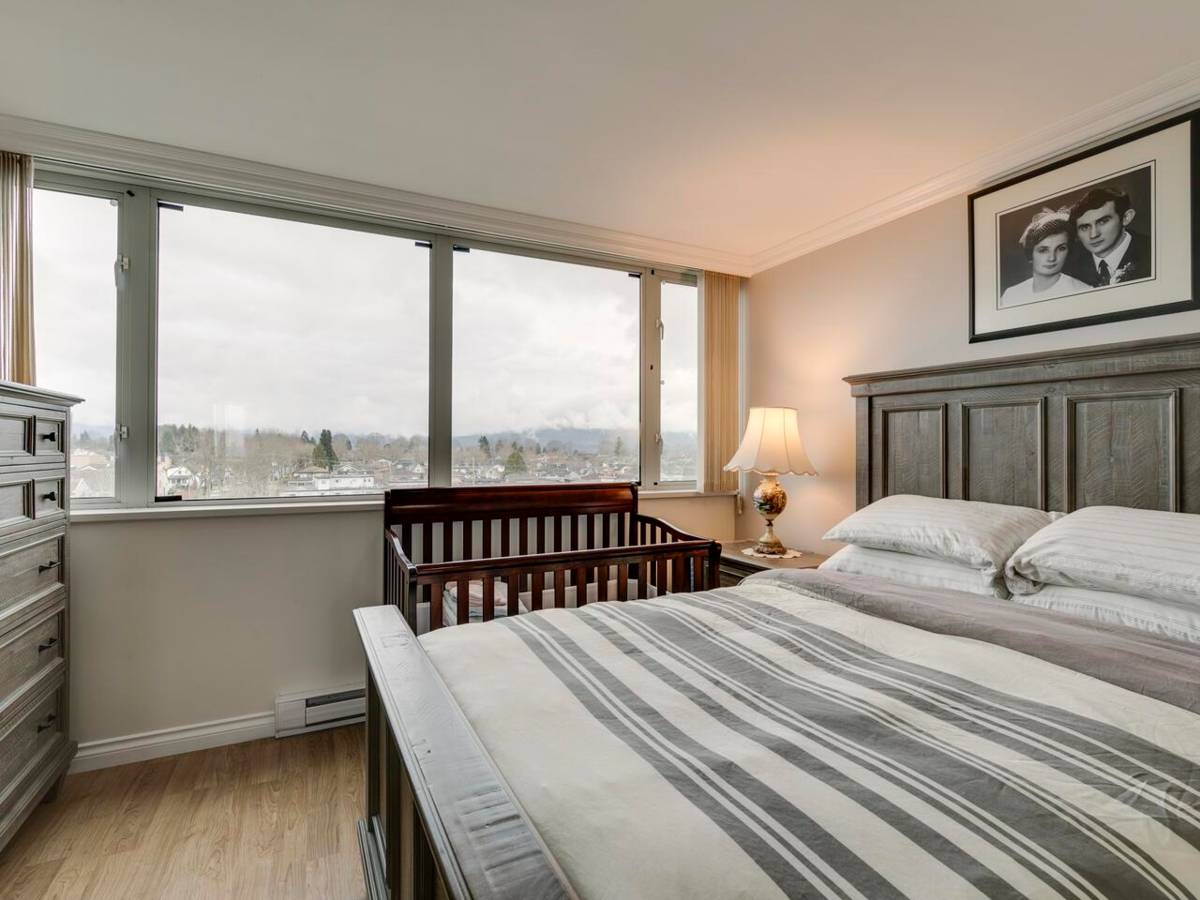 Stunning CORNER unit in Burnaby Heights offering breathtaking panoramic south, west, and north VIEWS of Brentwood, Metrotown, Downtown, the Ocean, and the North Shore Mountains. This spacious suite features living/dining areas perfect for entertaining, a large kitchen with ample storage, and two generous bedrooms, including a primary with a walk-through closet and cheater ensuite. Enjoy balconies on both the North and South sides. Steps from trendy restaurants, cafes, shops, and minutes to Downtown and the North Shore. Well-maintained Bosa concrete building with updates (roof, plumbing, windows, elevator). Includes 1 parking and 1 storage. Extra parking available to rent. Don't miss out! Call your agent for a private appointment!