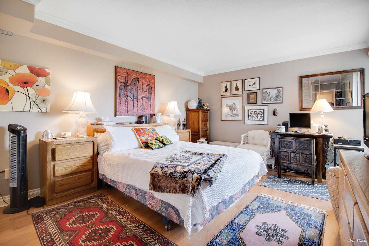 For more information, click the Brochure button. Enjoy the stunning views of the City, Ocean and Lionsgate Bridge and beyond from this beautiful 2 bedroom, 1.5 bathroom sub-penthouse. Updated kitchen includes stainless steel appliances and granite counter tops, walk in shower and in-suite laundry. Enjoy large North- East South balcony, plus 2nd North facing balcony to enjoy cool summer evenings and North shore mountain views. This concrete building offers 1 parking spot in secured underground lot. Conveniently situated in the Heart of Ambleside. Just blocks away from bus and within walking distance to shops, doctors offices, pharmacies, library, beach, parks, walking trail. Unicorn of Lioncrest - best of all worlds.