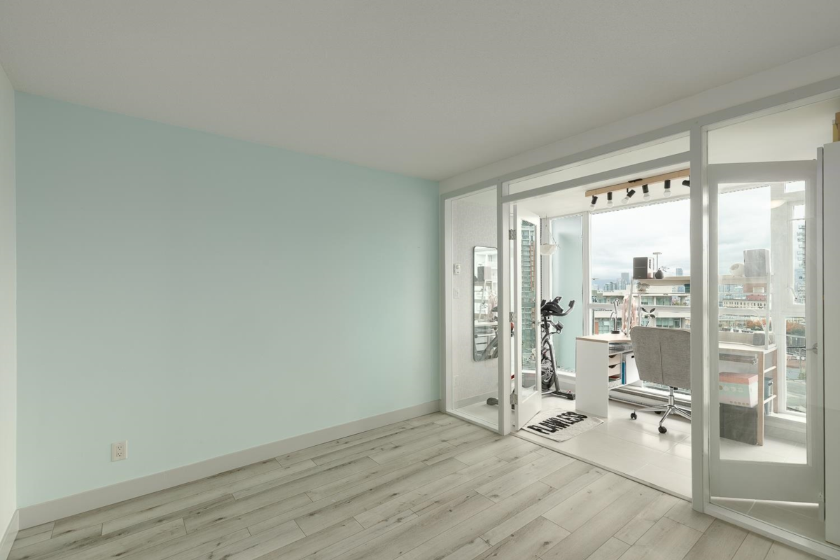 Welcome to this rare 2-bedroom, 2-bath plus 2 den home in the heart of SOMA, offering 979 sqft of thoughtfully designed living space and two side-by-side parking stalls with EV charging. Enjoy panoramic views from the North Shore Mountains to the downtown skyline through floor-to-ceiling windows that fill the home with light. The kitchen features a substantial Corian island, ideal for cooking and gathering. Freshly updated bathrooms strike the perfect balance of modern and cozy, while white oak floors flow throughout, complemented by natural textures and greenery. This well-kept building includes an upgraded fitness centre and an inviting outdoor common area. Just steps from Main Street’s best cafés, restaurants, and shops, this home delivers both style and livability.