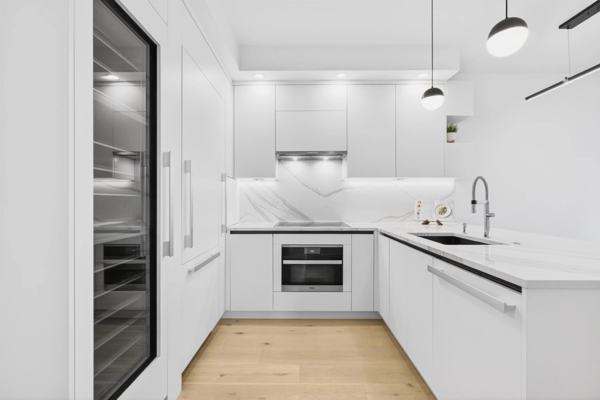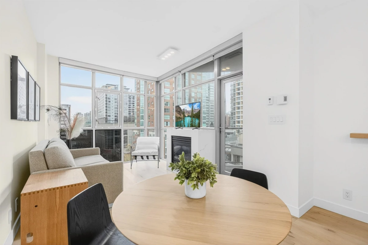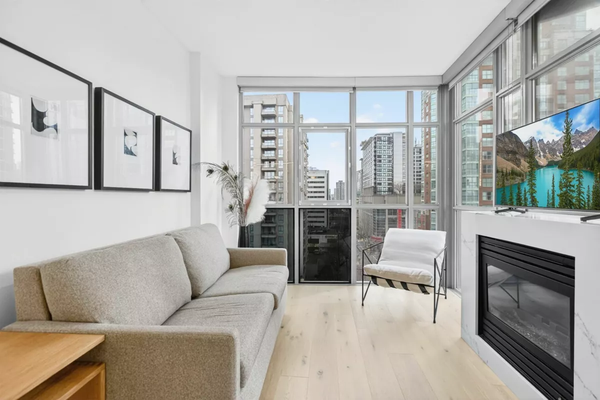 LIVE IN STYLE AT THE STERLING! Steps away from the vibrance of downtown and meticulously updated, this 1 bed + den, 1 bath home combines modern luxury and a sought after location, throughout 657 sqft of thoughtfully designed living space. This sophisticated and elegant renovation must be seen to appreciate with no expense spared! The kitchen is an entertainer's dream featuring a deluxe Miele Integrated appliance package including a 3 zone, 108 bottle wine fridge and a built-in range. Enjoy your 4 piece spa-like bathroom, including a stunning soaker tub; a very rare find in this floor plan! Other features include engineered hardwood flooring, premium modern finishings, custom fireplace surround, lofty ceilings & floor-to-ceiling windows that fill the space with natural light and city views.