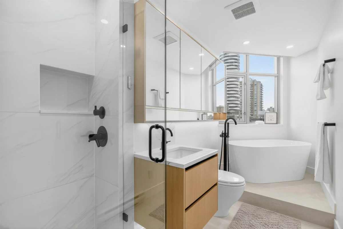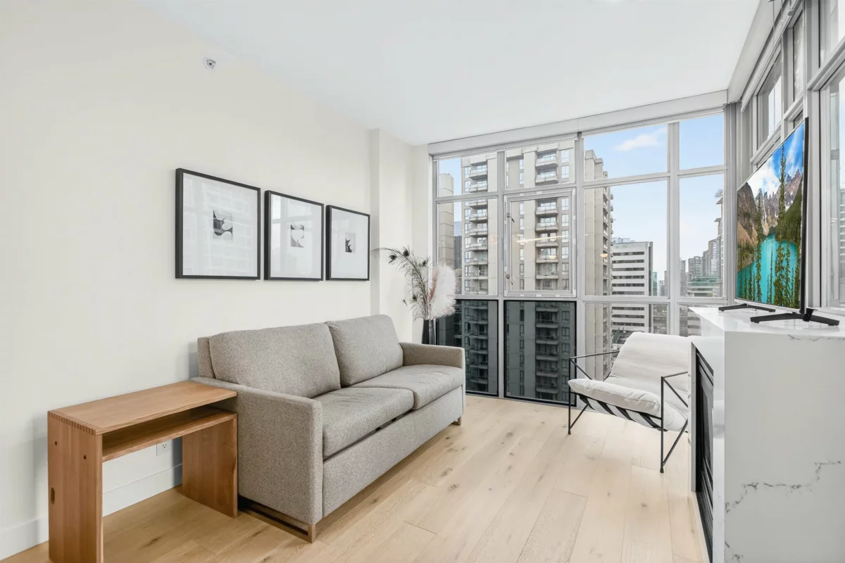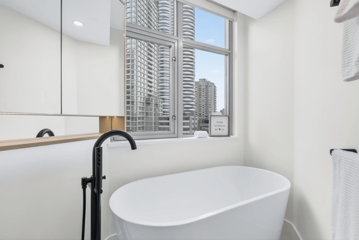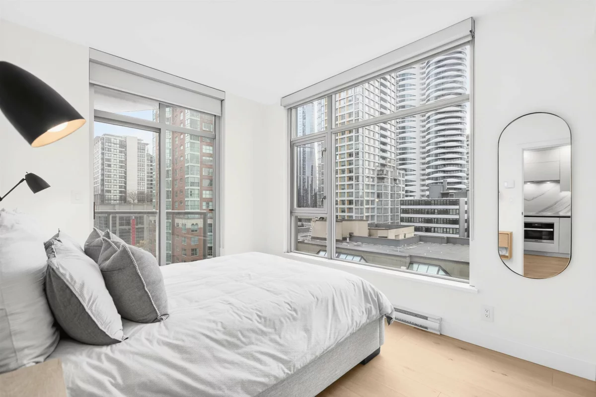 LIVE IN STYLE AT THE STERLING! Steps away from the vibrance of downtown and meticulously updated, this 1 bed + den, 1 bath home combines modern luxury and a sought after location, throughout 657 sqft of thoughtfully designed living space. This sophisticated and elegant renovation must be seen to appreciate with no expense spared! The kitchen is an entertainer's dream featuring a deluxe Miele Integrated appliance package including a 3 zone, 108 bottle wine fridge and a built-in range. Enjoy your 4 piece spa-like bathroom, including a stunning soaker tub; a very rare find in this floor plan! Other features include engineered hardwood flooring, premium modern finishings, custom fireplace surround, lofty ceilings & floor-to-ceiling windows that fill the space with natural light and city views.