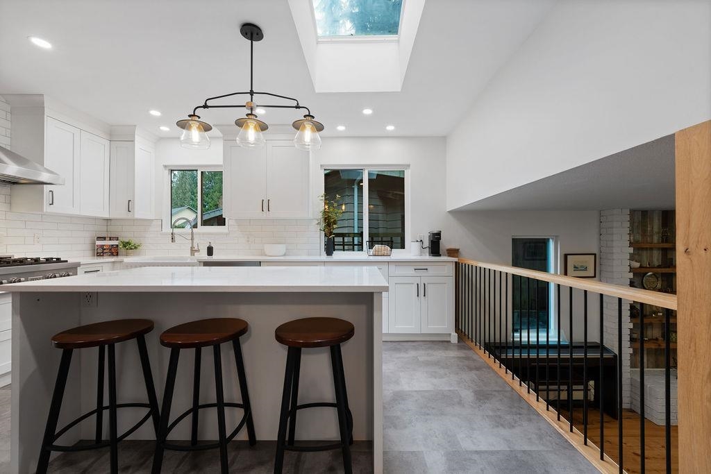 Your West Coast Oasis with stunning city, mountain & river VIEWS awaits! Perched on a quiet cul-de-sac, this meticulously upgraded home offers approx 2,426 sf of living space on an oversized 13,000+ sf lot, backing on to a private ravine. Experience Whistler retreat vibes w/ vaulted cedar plank ceilings, skylights drawing in natural light, upgraded thermal windows, elevated dining room w/ views, & a beautiful brick wood-burning fireplace. A well-appointed kitchen features SS appliances, casual breakfast nook, and overlooks the lower-level family room w/ access to an expansive backyard. Plus, a covered breezeway leading to a large double garage, RV Parking, and a rear workshop/shed. This is truly a one-of-a-kind GEM property that cannot be missed - book your showing today!