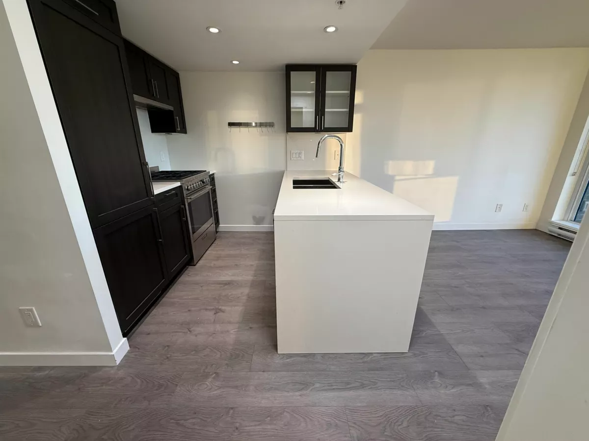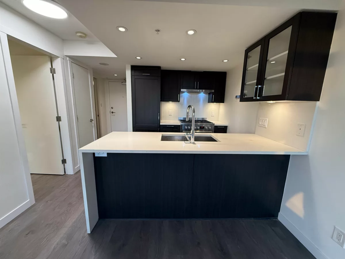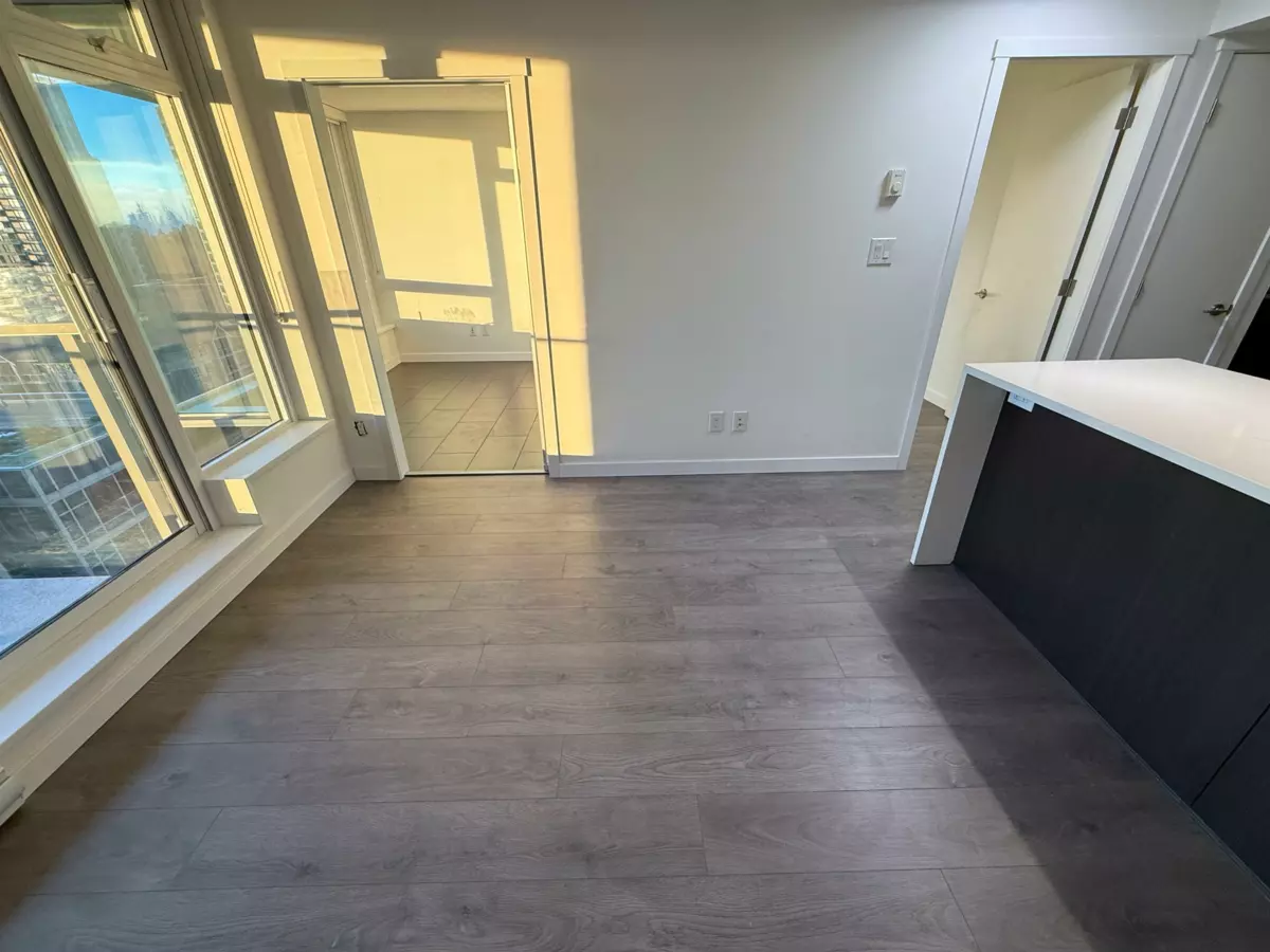 Beautiful 1 bedroom + den/office + flex with panoramic, unobstructed views on a quiet side of Wall Centre facing a quiet tree lined street. Den with floor to ceiling windows could easily be used as a second bedroom. Open concept layout with large kitchen island, floor to ceiling windows, quarts countertops, stainless steel appliances. New washer & dryer. 5 burner gas range. Roller blinds, soft close wood cabinetry. New floors trough out including the bedroom. Apartment newly painted and move in ready. Resort like amenities include a 60'indoor pool, hot tub, gym and roof top gardens. Just minutes to downtown, steps to sky train, bus and shopping. Very special storage locker in a private room located on the same floor as the unit. Easy to show. Open House Saturday a d Sunday, Dec.6 and 7th.