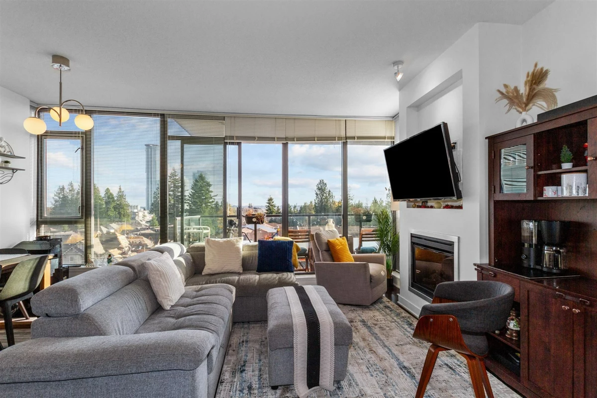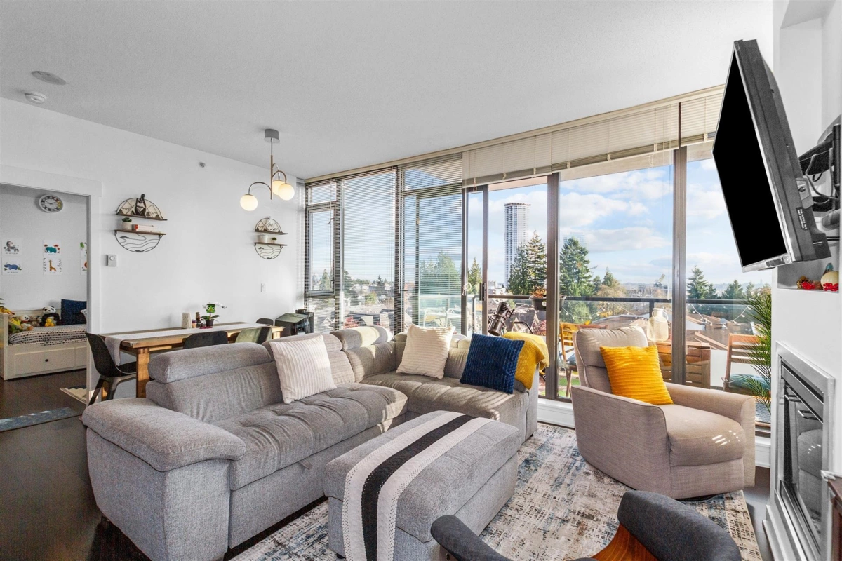 Discover breathtaking views with this Southeast-facing (SE), 2-bdrm, 2 bath 875 sqft corner unit. The expansive floor-to-ceiling windows offer stunning vistas of bridges, mountains, ocean & filling the space with natural light. Enjoy a panoramic balcony view, modern finishes-granite countertops, stainless steel appliances, 9-foot ceilings & laminate flooring. The unit boasts excellent amenities, including a gym, sauna, whirlpool & lounge. Located just steps from the Sky-Train & shopping, it combines comfort, style & convenience for the ultimate city living experience. Highly rated Taylor Park elem school catchment & new ice rink (Rosemary Brown Center) is 5 min away. 2 SIDE by SIDE pkg (in front of the elevator) 1 locker.