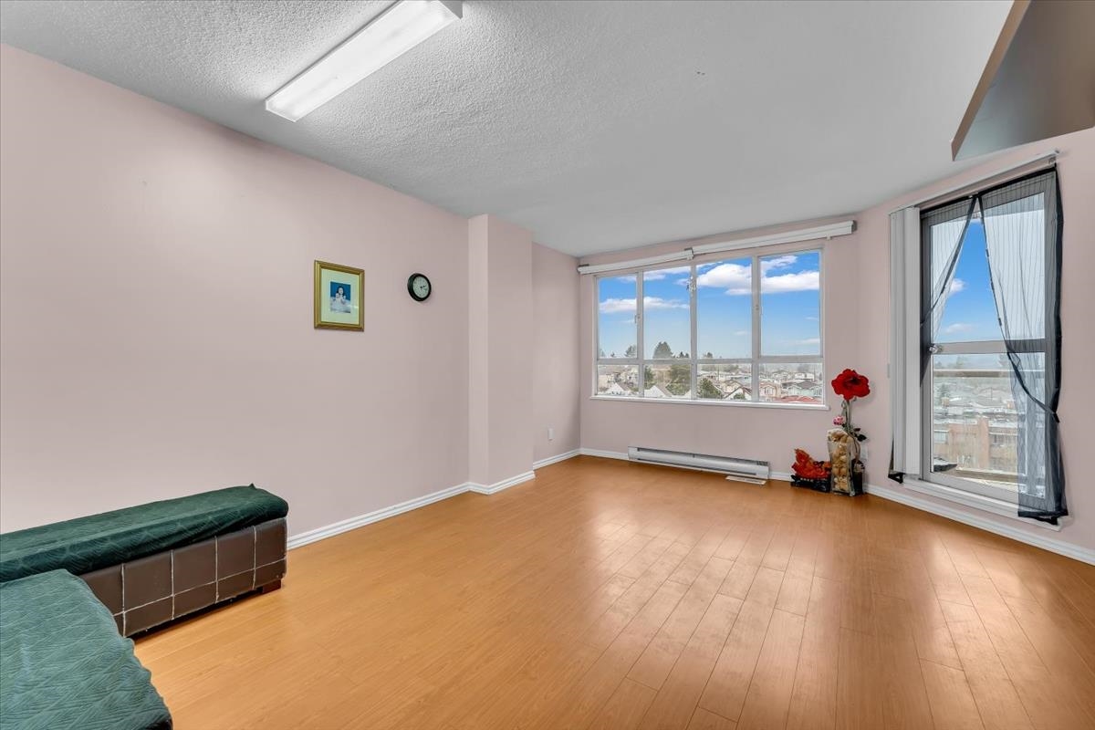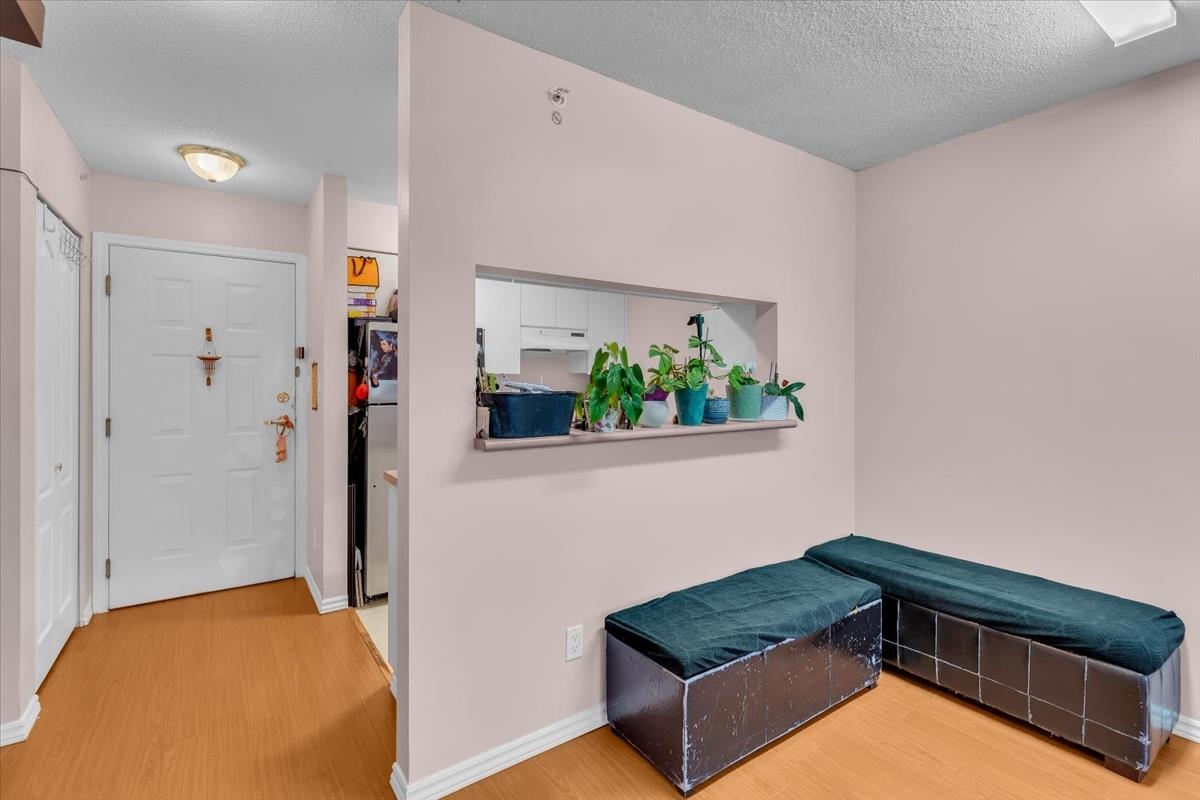 Amazing first-time home buyer opportunity. Regent’s Court in the heart of Joyce-Collingwood. This efficiently laid-out upper-level unit offers approximately 500 sq ft of comfortable living with updated laminate flooring, a spacious living and dining area, a smart kitchen, and excellent natural light throughout. Concrete construction provides peace of mind and quiet enjoyment. Just steps to Joyce SkyTrain Station, groceries, restaurants, parks, and everyday conveniences, making commuting downtown or across the city effortless. Rentals allowed, ideal for first-time buyers or investors seeking strong transit-oriented demand. A rare opportunity to own in Vancouver for under $500k.Very easy to show with the lockbox on site. Selling as is.