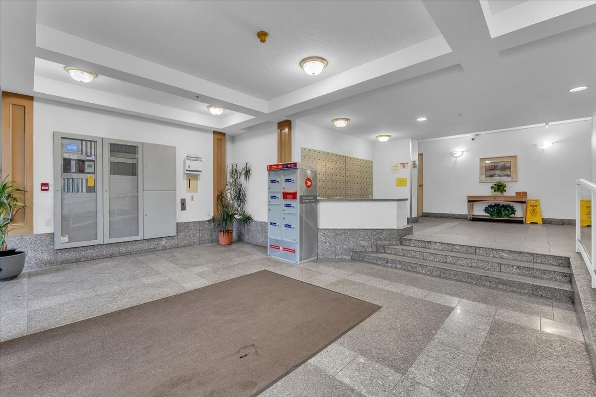 An exceptional opportunity at Regent Court, steps to Joyce-Collingwood Skytrain. This bright upper-level 1 bedroom, 1 bathroom residence offers a thoughtfully designed open layout with nearly 520 sq ft of efficient living in a solid concrete building- quiet, private, and built to last. Natural light fills the space, creating a calm, modern atmosphere. Enjoy effortless urban convenience- SkyTrain, shops, cafés, and parks just steps from your door, while still being tucked into a family-oriented, walkable Vancouver neighbourhood. Rentals allowed, making this a rare find for investors, first-time buyers, or downsizers seeking long-term value in a transit-connected location. And the already low strata fee includes Hot Water. Virtually staged inspiration for your home in the heart of Vancouver!