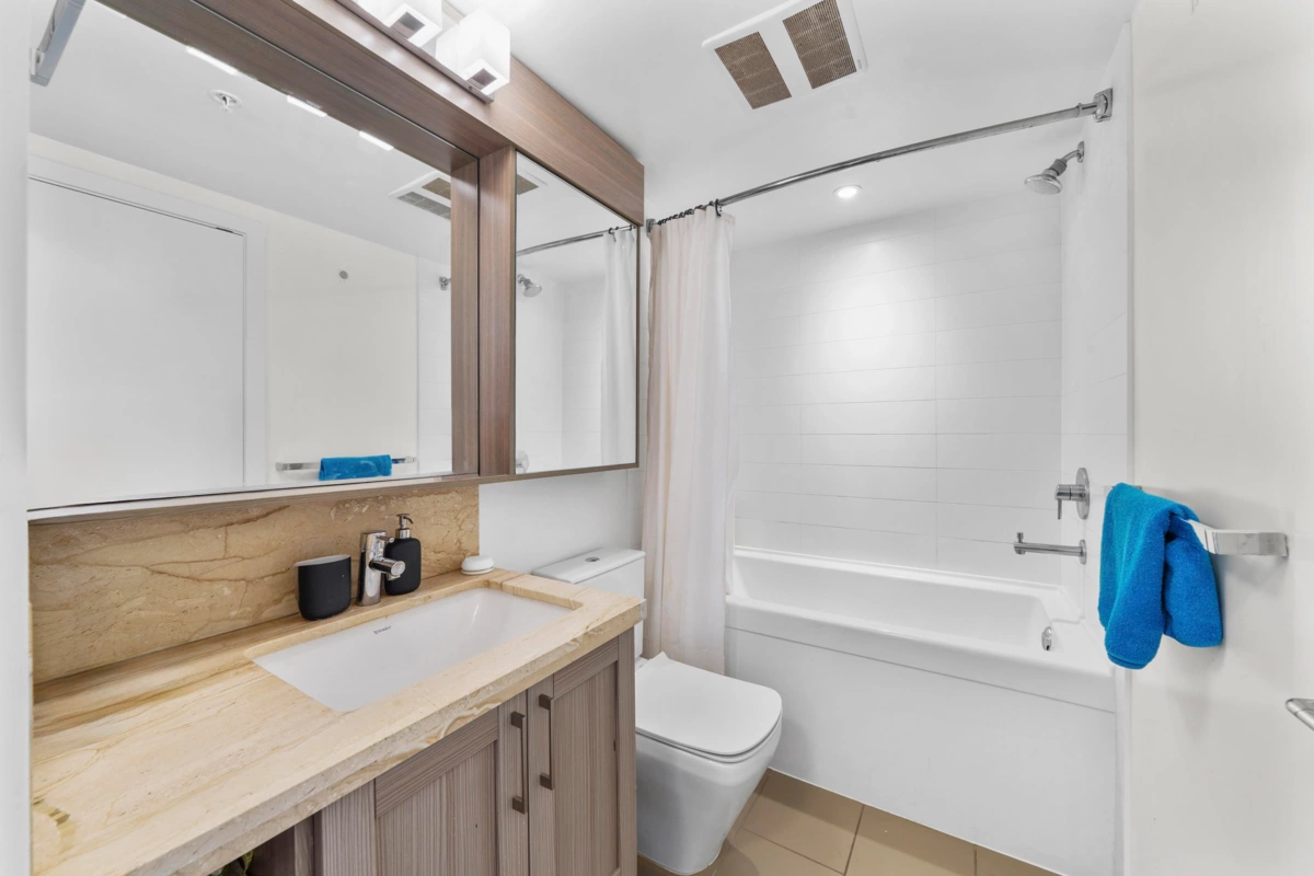 Welcome to Wall Centre Central Park Tower 3. Beautifully maintained 1 bed, 1 bath plus den and a flex space(in suite storage) features gorgeous modern shaker-style cabinetry, quartz counters, stainless appliances (gas range), integrated fridge, warm laminate floors, floor to ceiling windows allowing an abundance of natural light, creating a bright and airy ambiance. This unit comes with 1 Parking, 1 HUGE storage locker. The complex features impressive amenities; fitness centre, meeting room, roof top garden. Unbeatable location: steps to Joyce SkyTrain Station, Central Park, minutes to Metrotown, all groceries, cafes, restaurants, schools, transit and more! Perfect for Investors or first time buyers. Move in ready!