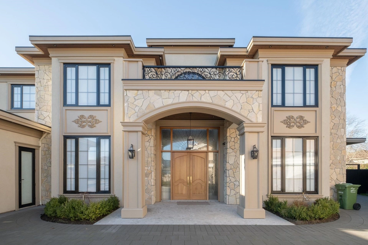 Stunning and stately brand-new home in the prestigious Woodwards area, offering 5,939 SF of luxurious living on a private 14,262 SF lot. Beautiful stone and stucco exterior, fenced and gated with excellent curb appeal. Features 5 bedrooms (1 on the main), all with ensuites, 5.5 bathrooms, a spacious family room, 2 kitchens, 2 laundries, media room, office, sauna, and wine cellar. Top-tier appliances, HRV, A/C, sprinkler and security systems, and built-in vacuum. The backyard boasts a massive 2,000 SF patio, perfect for entertaining. Conveniently close to shopping, schools, and transit. Ideal for the discerning buyer.