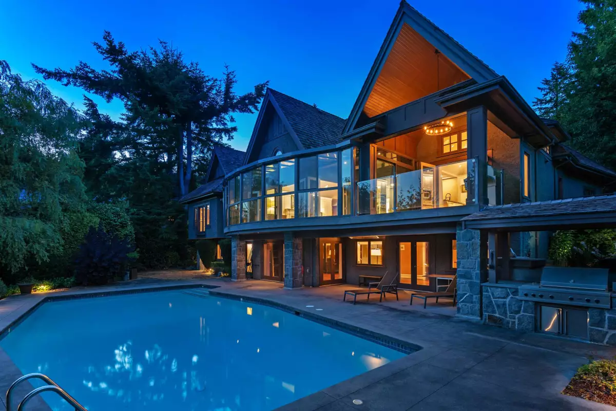 Nestled on a secluded 0.55-acre estate along The Golden Mile, underwent an impeccable transformation by local builder “Goldwood Homes”. Inside, experience the epitome of grandeur with a splendid granite & stainless steel kitchen, complemented by gleaming hardwood floors & vaulted ceilings. Numerous French doors lead to expansive decks & south-facing landscaped backyard/park. The outdoor sprawling pool, jacuzzi, fireplace & BBQ area offer an ideal setting for cherished family moments and entertaining gatherings. 3 bdrms on the main flr. The basement features large recreation rm w/ wet bar, media rm & 2 bdrms. The gated property with a heated driveway. Swift access to Chartwell Elementary, Sentinel Secondary, and Hollyburn Club. Open house: May 17 Sat 2-4pm