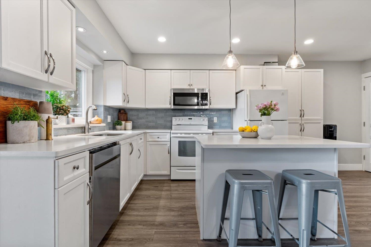 Fort Langley Townhouse! Enjoy true village living just steps from your front door. A rare opportunity to own a four-bedroom, three-level townhome in one of the Fraser Valley’s most sought-after communities. This updated home is part of a well-run, self-managed strata offering low maintenance living. The main floor features a cozy living room, powder room, and a renovated kitchen with island, opening to a spacious deck and large private backyard, perfect for entertaining. Upstairs offers three bedrooms and a full bath, while the fully finished basement includes a fourth bedroom, new bathroom and laundry. Bonus: two parking spaces conveniently located at the back.