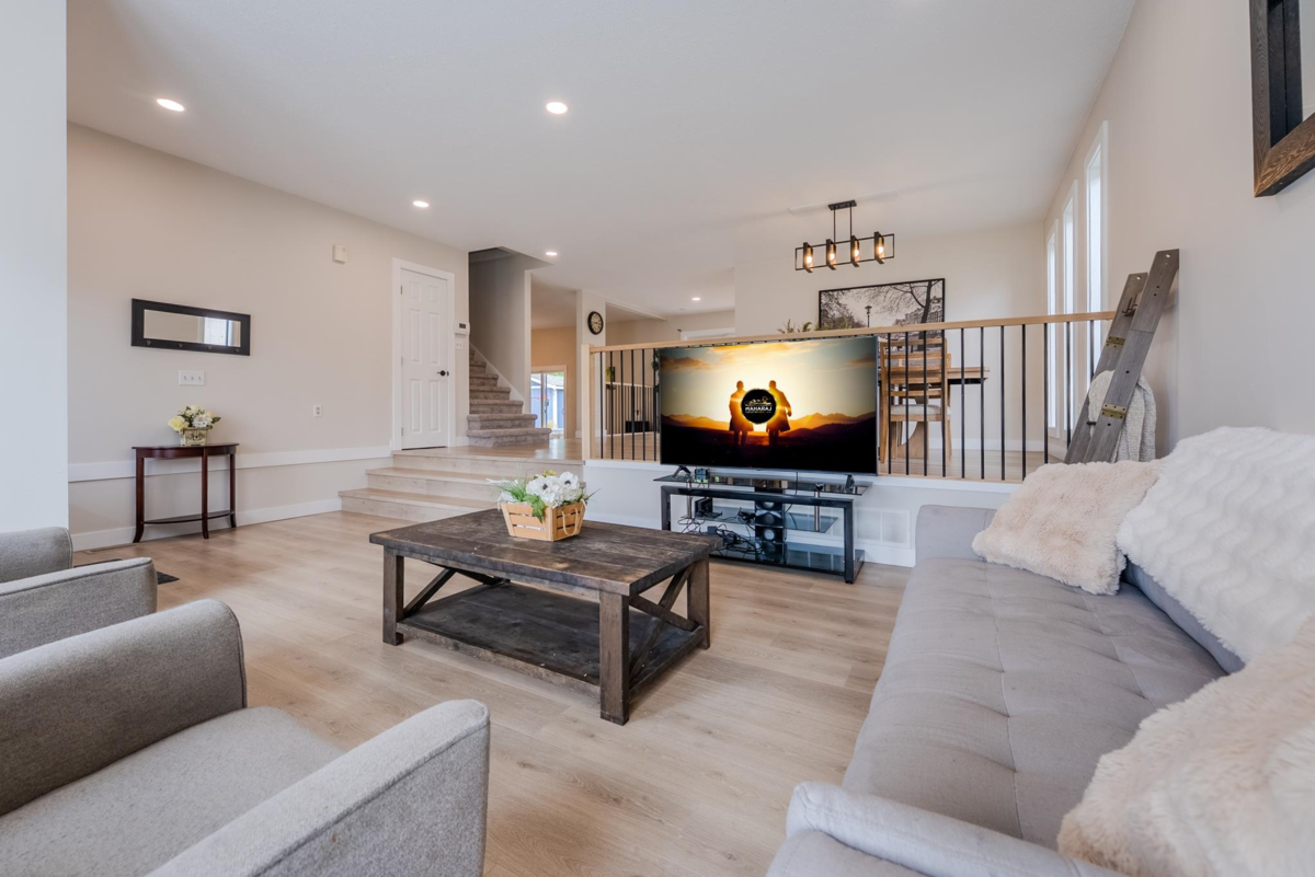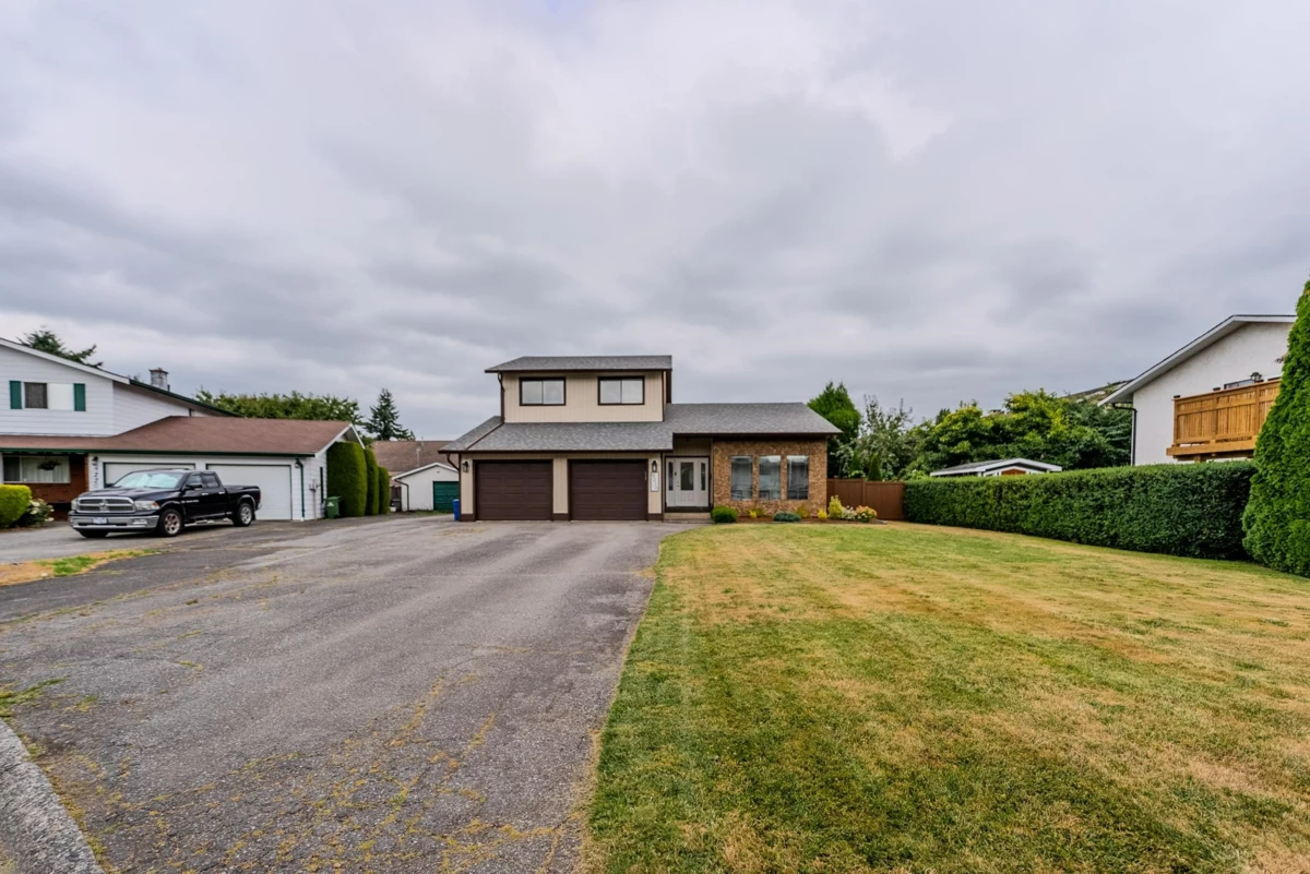 Central Chilliwack Charmer — Fully Renovated & Move-In Ready. Step into this beautifully updated 3-level split home in the heart of Chilliwack. With over $100,000 in thoughtful renovations, this 3 bed, 3 bath home offers 2,200 sq.ft of bright, open-concept living. Enjoy brand new flooring throughout, modern lighting, and a completely reimagined kitchen featuring stainless steel appliances and clean, contemporary finishes. The spacious den is anchored by a cozy woodburning fireplace—perfect for quiet evenings or family gatherings. Sitting on a generous 9,147 sq.ft lot, the fully fenced backyard offers privacy hedges, a hot tub on the deck, and room to relax or entertain. A double garage adds convenience, the AC keeps everyone cool and the location puts you minutes from schools & shopping.
