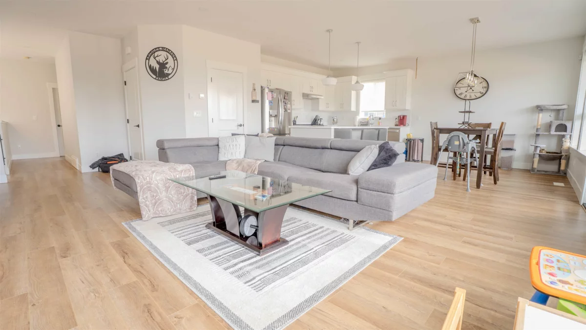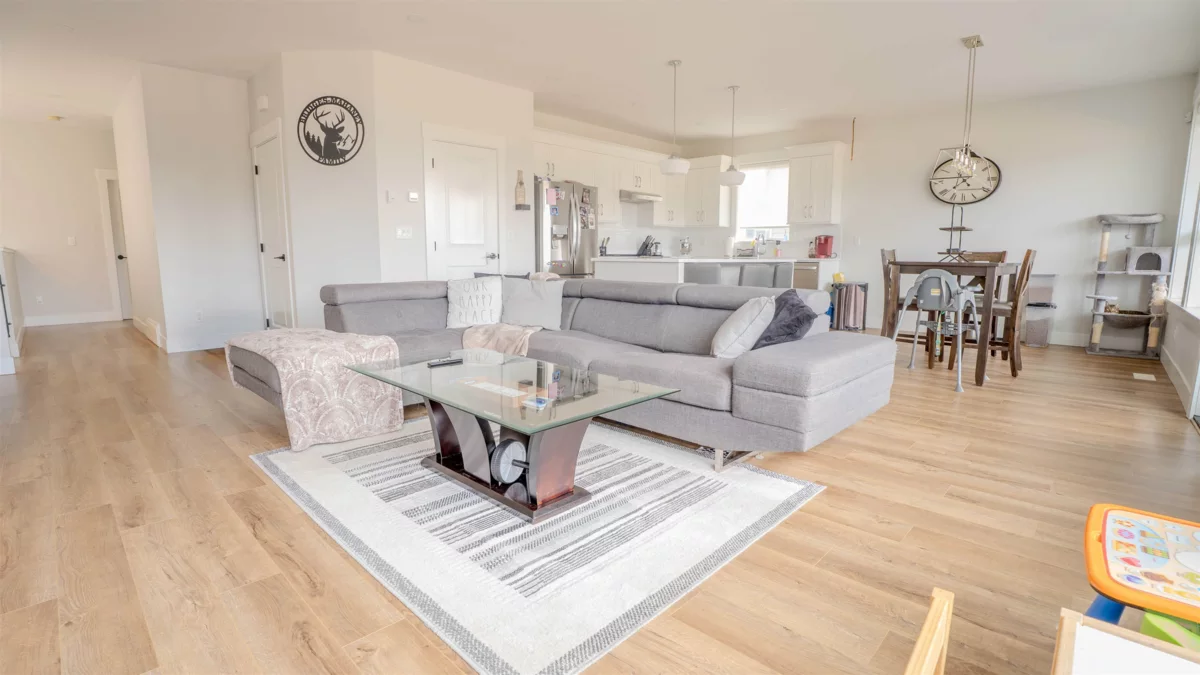 Welcome to this beautifully designed 5-bedroom home. The open-concept kitchen features quartz countertops, quality appliances, a spacious pantry, and plenty of natural light, flowing seamlessly into a cozy living area ideal for entertaining. The main floor offers three bedrooms, including a primary suite with a 5-piece ensuite and an additional full bathroom. This home is equipped with modern features such as central air conditioning, a built-in vacuum system, custom blinds, and stylish laminate flooring throughout. The lower level provides additional living space, offering excellent flexibility for extended family use. Enjoy a fully fenced backyard with scenic views. Still under warranty, this well-maintained home is located in a desirable neighbourhood close