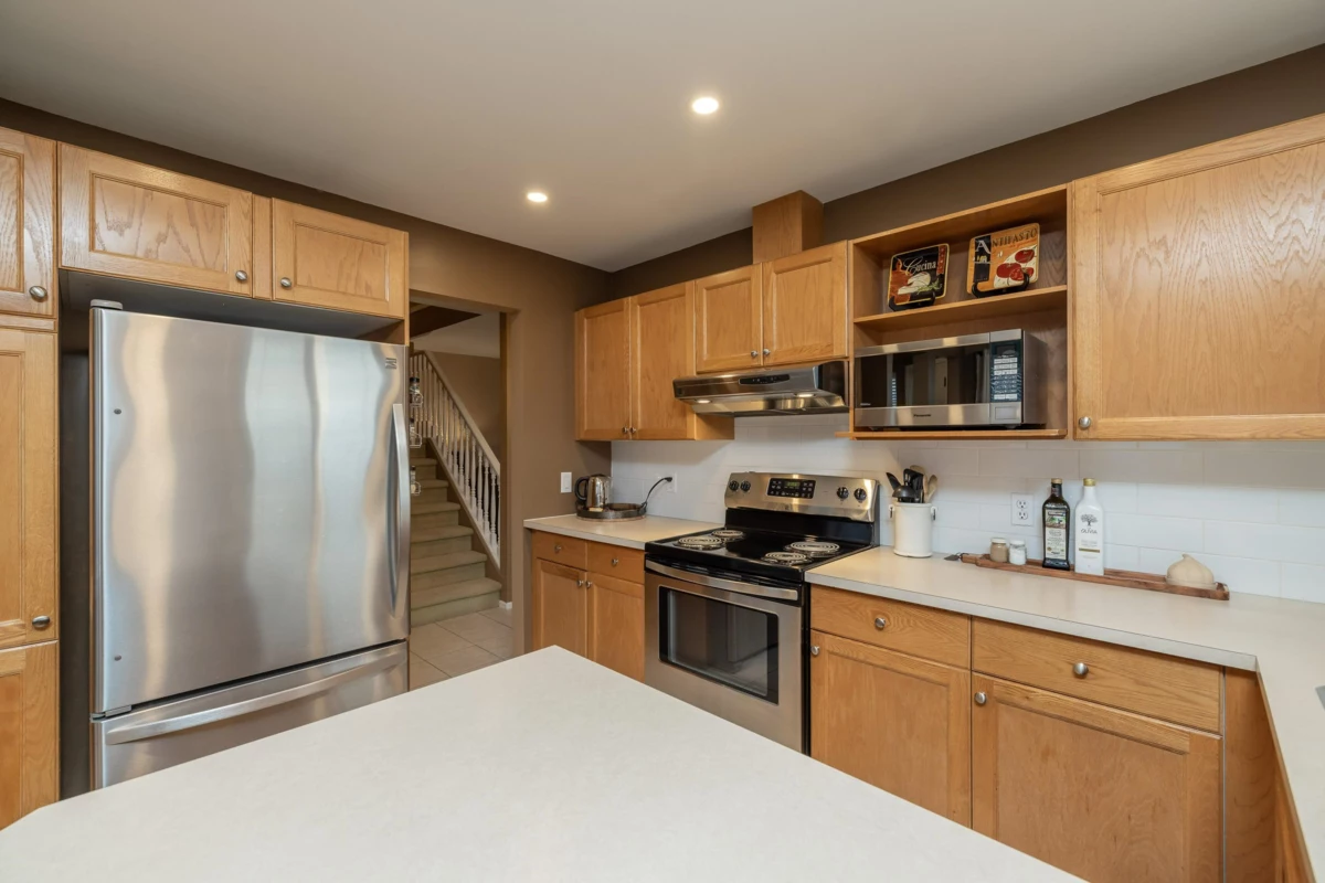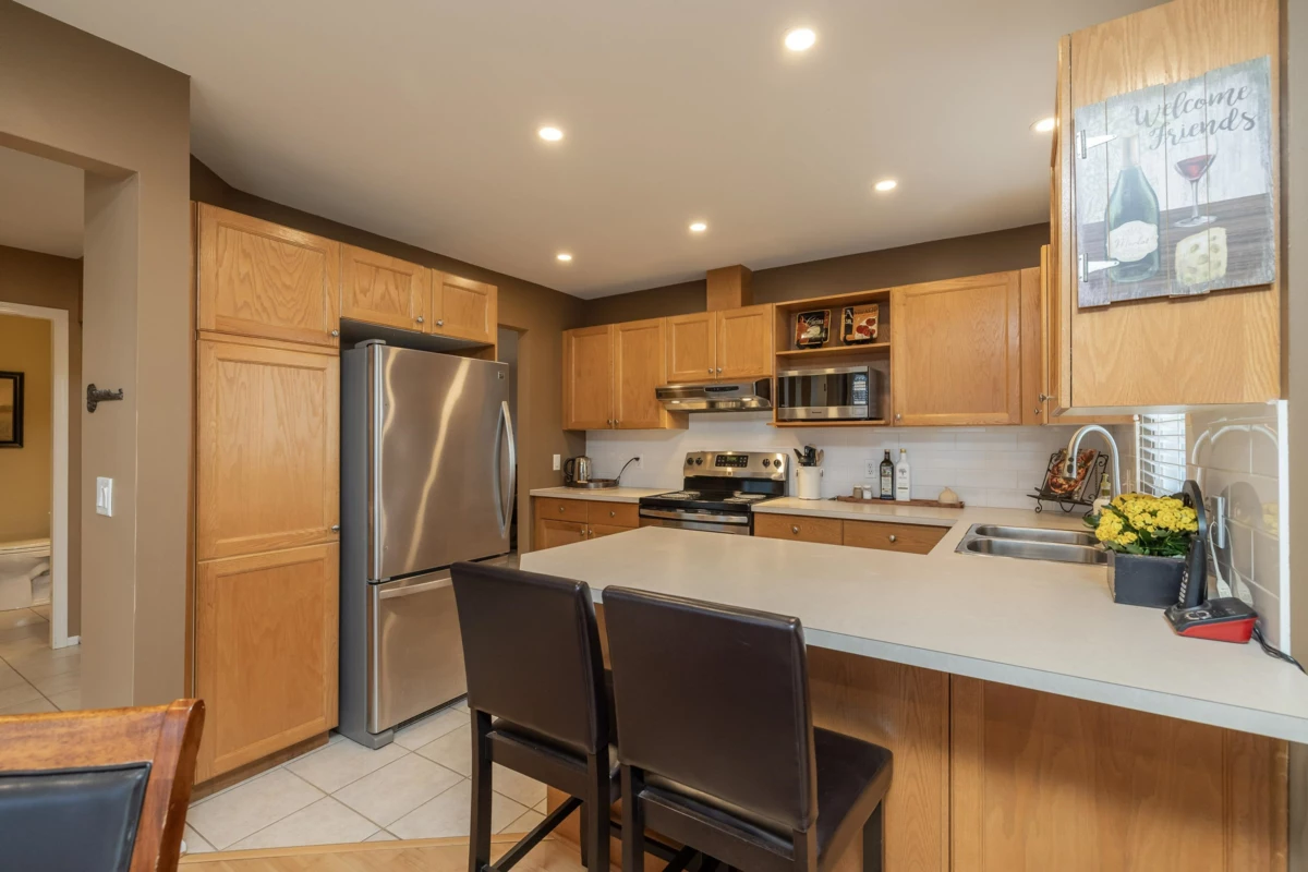 Welcome Home to Beautifully updated 3 Bdrm, 3 Bath, end unit in well sought after Murrayville Glen! Bright spacious corner unit boasts open Living-Rm. w/ Gas FP to Dining area w/ sliding door to quiet yard w/extended patio. Plenty of Cabinet & Counter space in Kitchen w/ Breakfast Bar, SS appliances, adjacent to Family/Flex room; & Powder/Laundry room. Upstairs: 3 Bdrms w/ Spacious Primary Bdrm, 4 pc ensuite, & 4 pc Main Bathrm. Updates include paint, flooring, light fixtures & potlights on the main floor, updated Electrical/Plumbing, Toilets, New Windows & HWT! Gated Family Complex offers a Built-in Play area, Clubhouse & Exercise Rm. Short walk to Ross Park & Murrayville Amenities, Schools, Shopping, Restaurants, Cafes, Parks, Public Library, W.C. Blair Pool/Rec Centre & Public Transit.