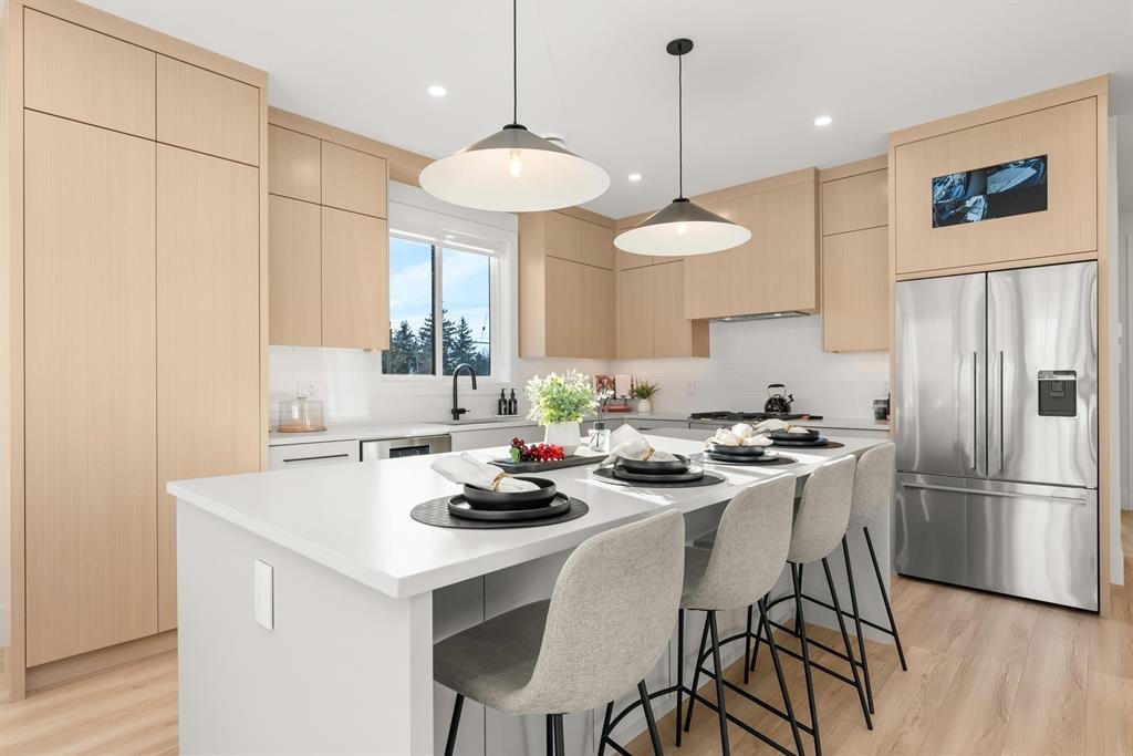 2 LEGAL SUITES ARE HERE! Experience the first-ever presale of single-family homes with coach homes in Ebor Plateau, built by Satori Homes. These 8-bed, 5-bath residences feature 9-ft ceilings, radiant heating, and central A/C for ultimate comfort. The spacious main floor includes elegant living and family areas, a chef’s kitchen, and a private walkout yard. Upstairs, the primary suite boasts stunning Fraser River and city skyline views. Enjoy two mortgage helpers: a legal 2-bedroom suite plus a legal 2-bedroom coach home with laneway access. Prime location with easy access to highways, transit, and top schools. Limited release, act now to secure your home!