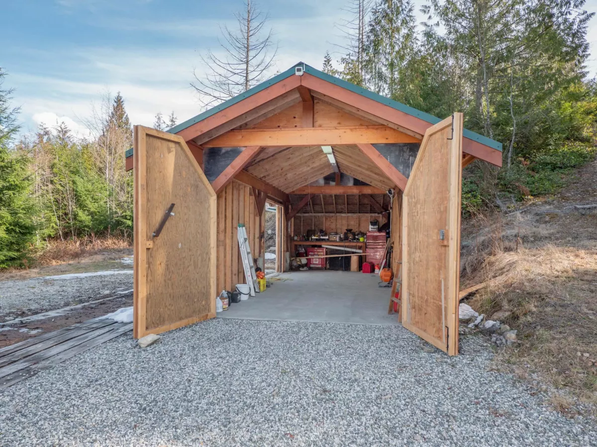 Discover a multi-generational dream on 11.51 acres in Halfmoon Bay, BC. Enjoy stunning ocean and valley views with zoning for up to three homes, an auxiliary dwelling, and 40 camp/RV sites. Infrastructure is complete with a new driveway, power, dual wells, built trails, and 3 fully serviced RV sites. A reclaimed Vancouver shell home sits on a serviced foundation, offering panoramic ocean and valley views. The auxiliary cabin features radiant in-floor heat, heat pump AC/Heating, on-demand hot water, a wrap-around deck, wood-burning fireplace, bath with walk-in shower, and a skylit loft. A high-ceiling garage with barn doors adds versatility. With a private pond and proximity to Homesite Creek Falls and Sechelt amenities, 9305 Stephens Way awaits your vision.