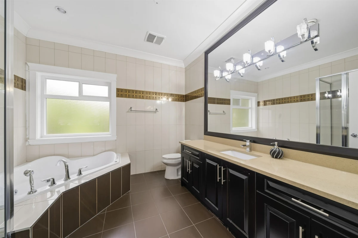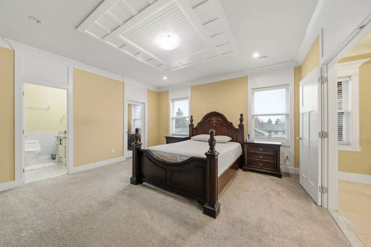 MANSION.... MEGA HOUSE! HUGE bedrooms & HIGH Ceilings! Approximately 6,473 sqft of floor area on 10,000+ sqft lot. Features LUXURIOUS top of the line finishing with attention to detail. Multiple MASTER BEDROOMS & jacuzzi bathrooms! All bedrooms come with their own washroom. Two suites (2 + 1) with separate laundry & option of keeping a master bedroom on bottom floor for personal use. Floor heating, tile roof, crawl space, AC, spice kitchen, long brick paved driveway, theatre room and much more. Custom built house with beautiful design and finishing throughout. CENTRAL LOCATION! Open House Saturday January 31 from 1-3PM.